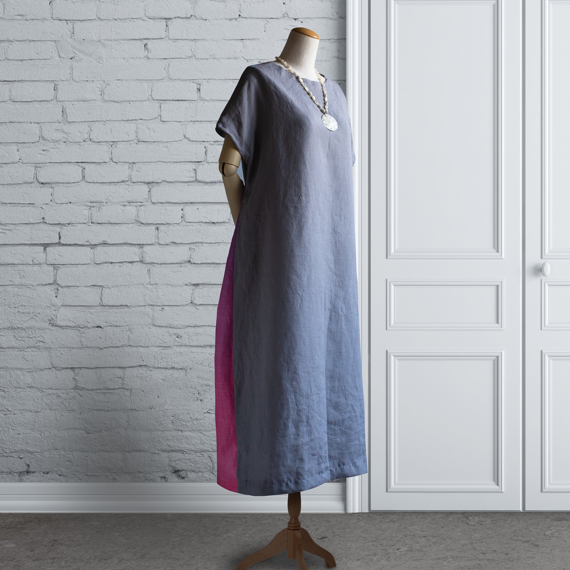 Signature リネン シルバーグレー×グラデーション ベリーベリー サイドタック ワンピース(フレンチスリーブ)