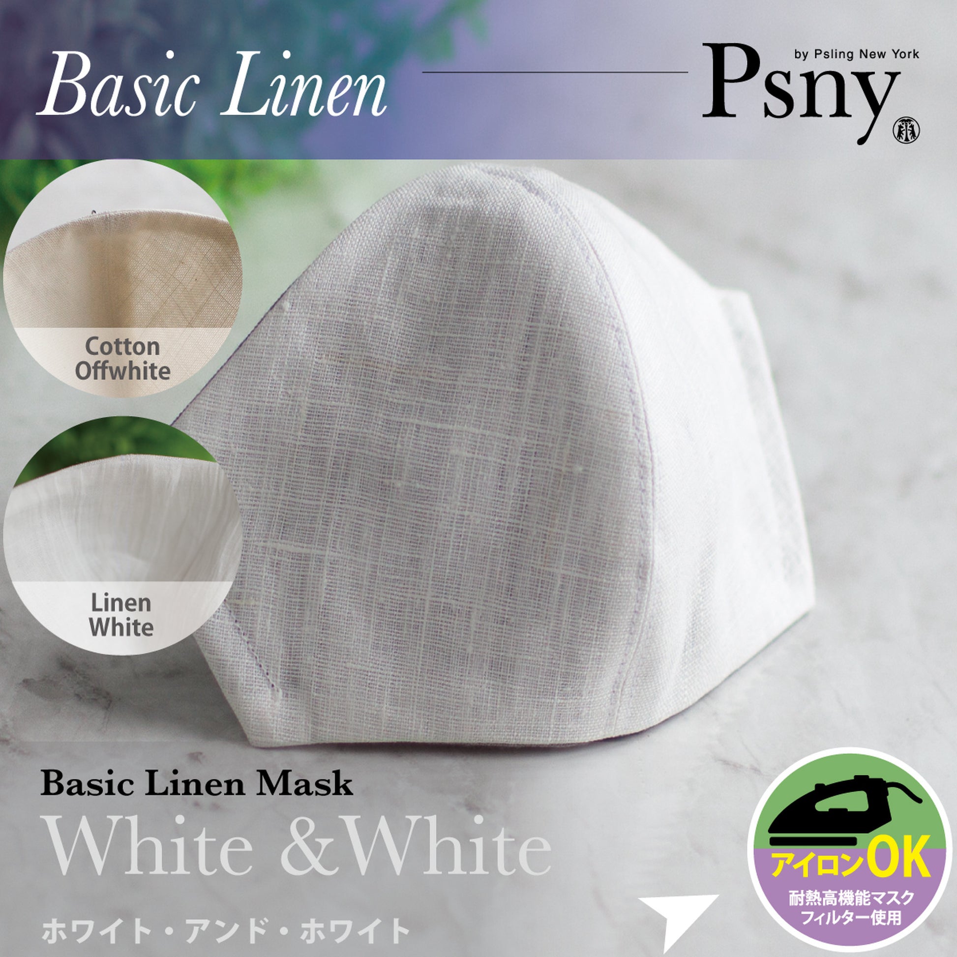 【基礎白亞麻-白色】這款口罩採用優質法國亞麻(100%亞麻),通過嬰兒檢驗。粗獷大方的麻布,有著天然材料特有的沉穩優雅的質感。即使在儀式場合也可以毫無不適地使用充滿清潔感的氣氛。是好萊塢名流喜愛的PSNY獨有的完美度極高的作品。