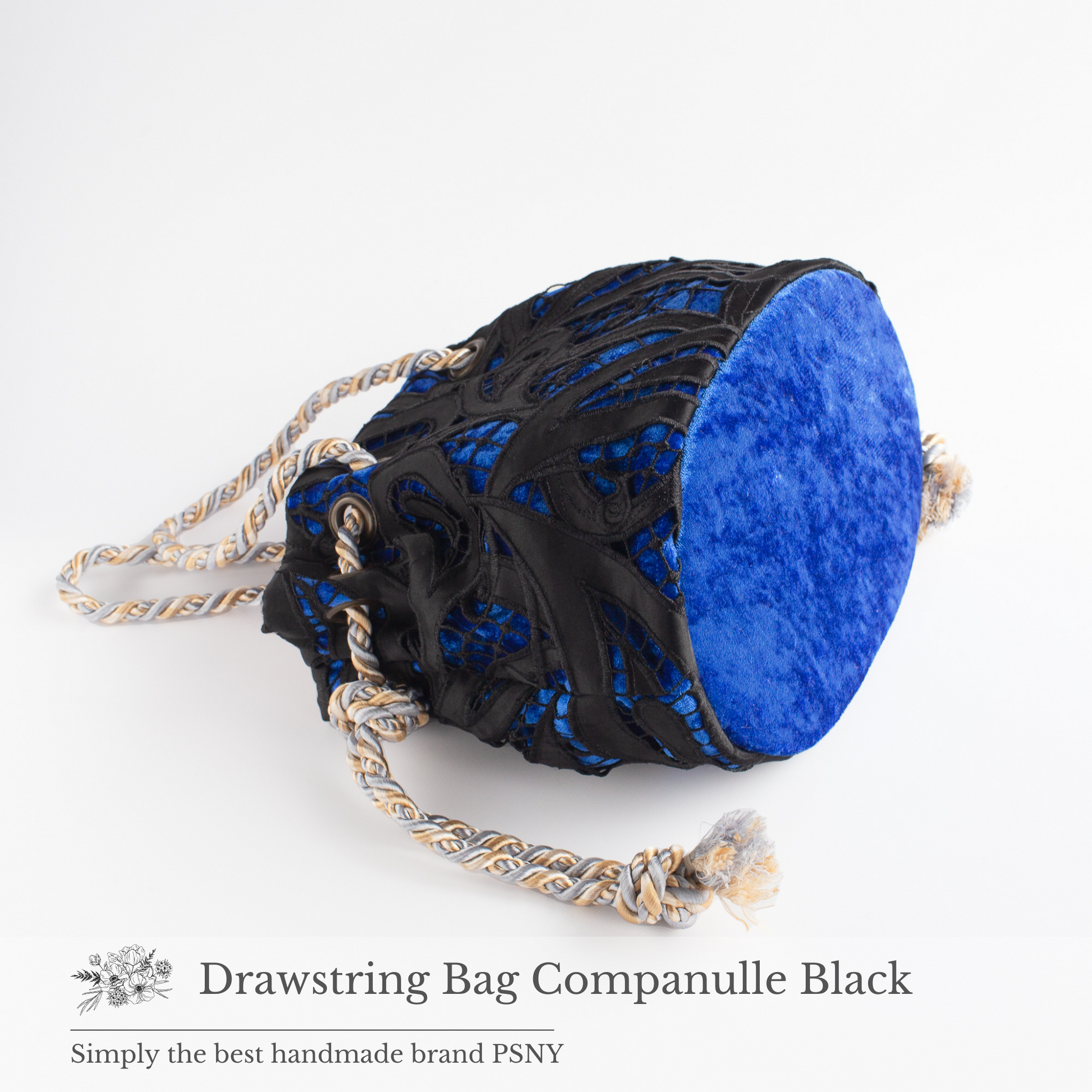 ★ Campanulle 黑色蕾絲藍天鵝絨抽繩包