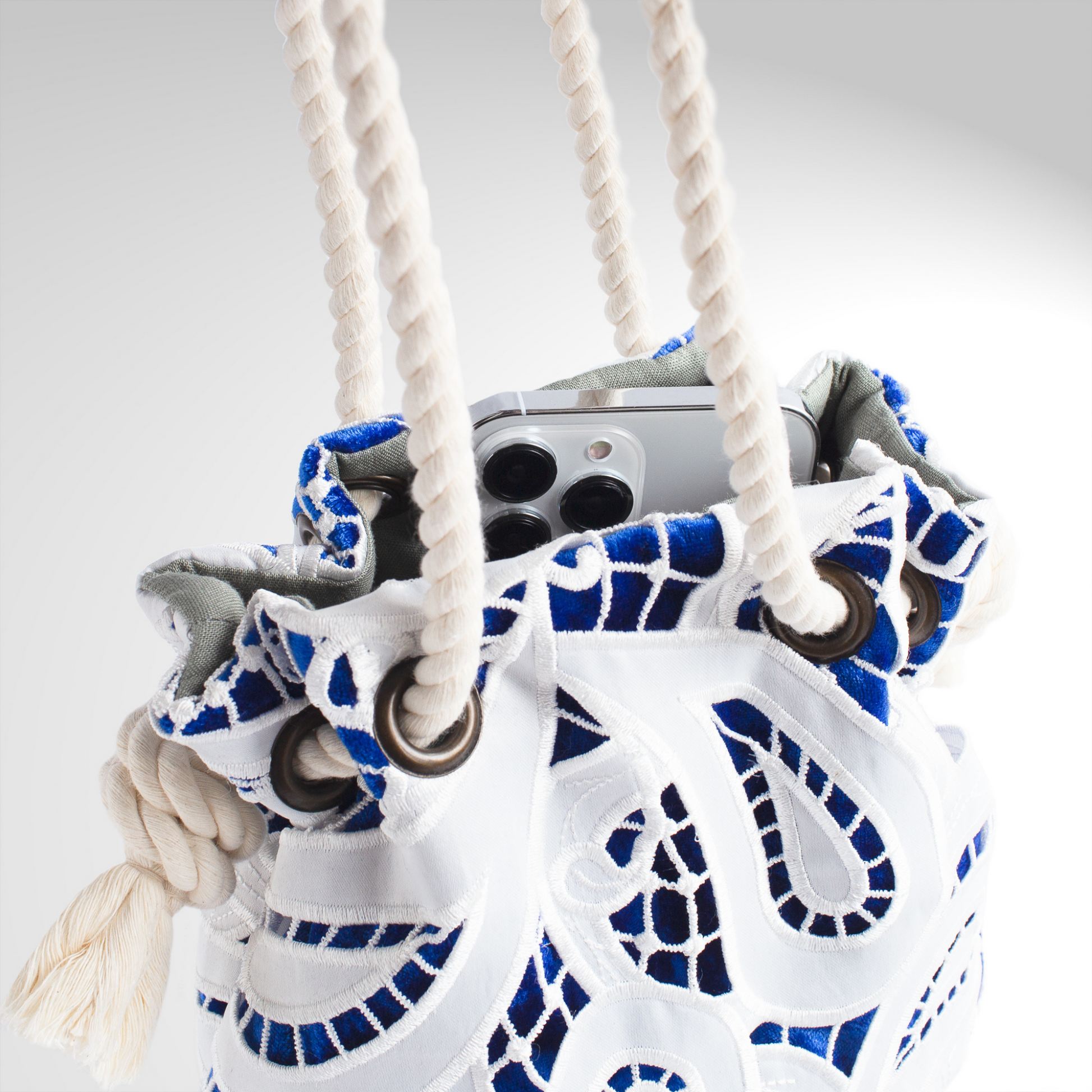 Campanule 蕾絲抽繩包,大佩斯利圖案。