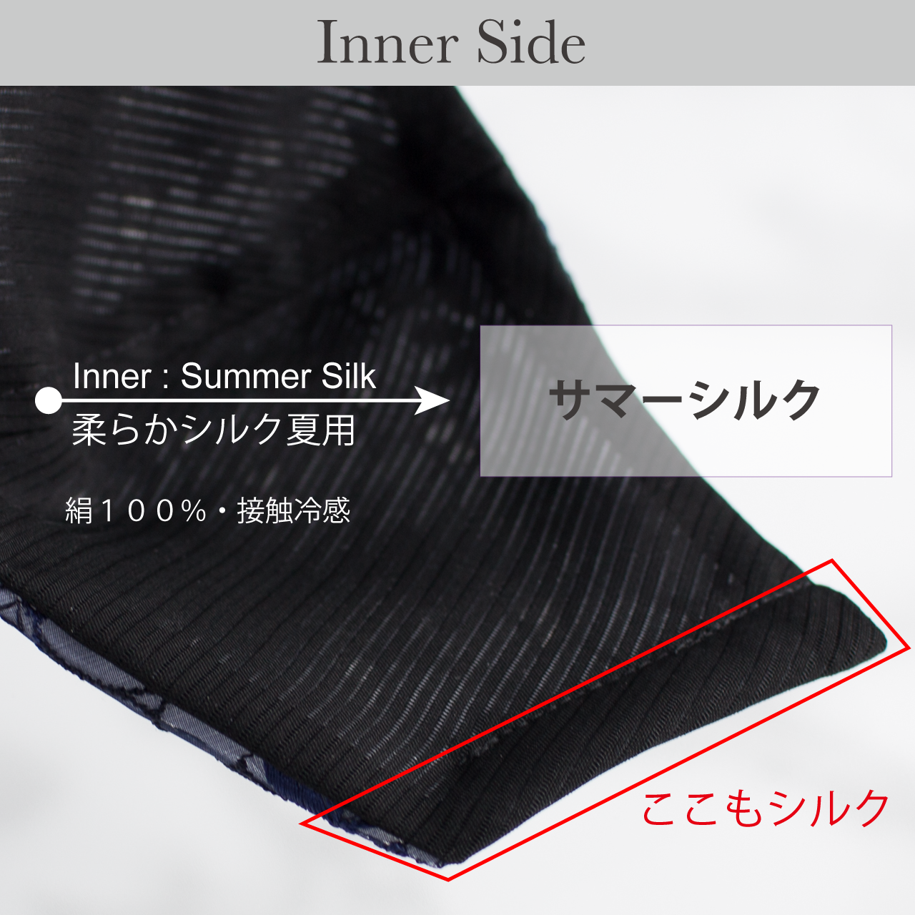 天然シルクは人の肌と同じタンパク質由来で、長時間の着用でも優しい肌触り。