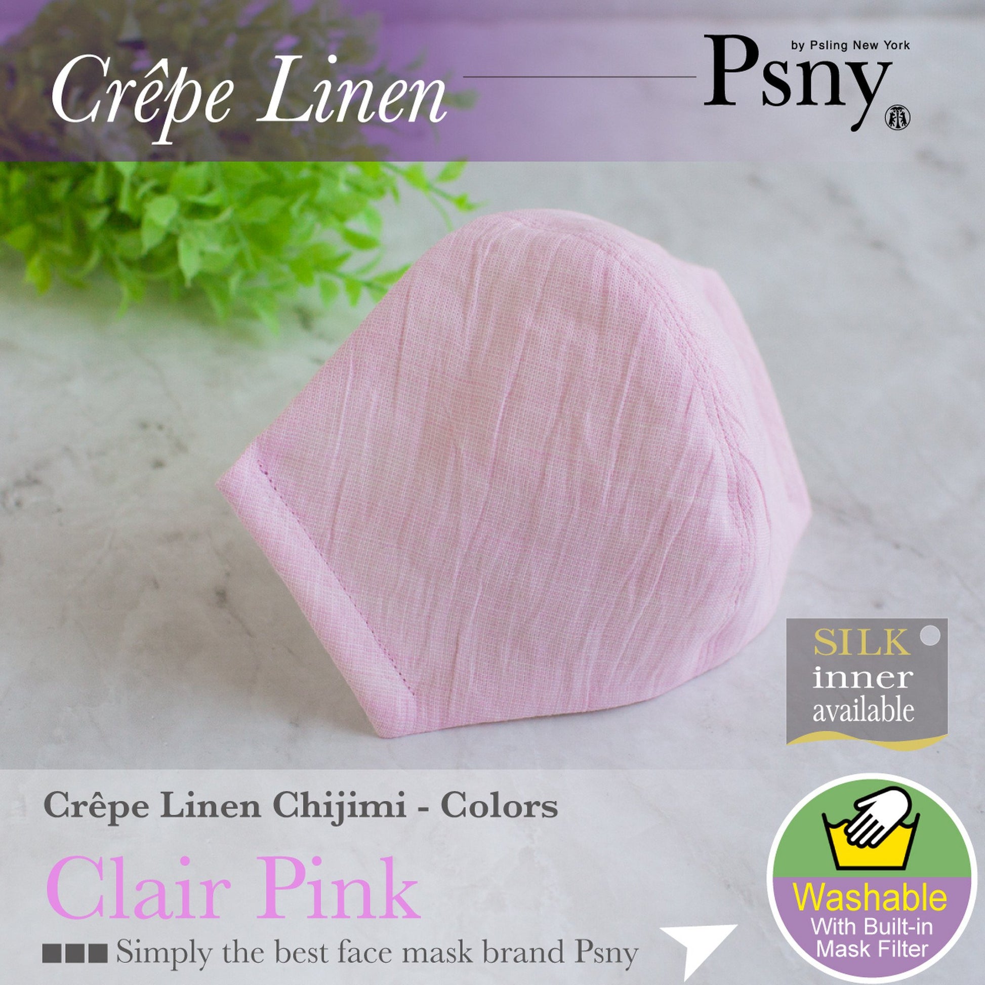 【Crepe de Lin-Claire Pink】這款面膜採用最優質的材料,100%通過嬰兒檢驗的近江縮水麻製成,採用傳統的“手捲”工藝輕柔收尾。對於內層皮膚,您可以選擇同樣清爽的亞麻“縮水”或柔軟的“絲綢”。是好萊塢名流最愛的PSNY品牌獨有的完美度極高的作品。