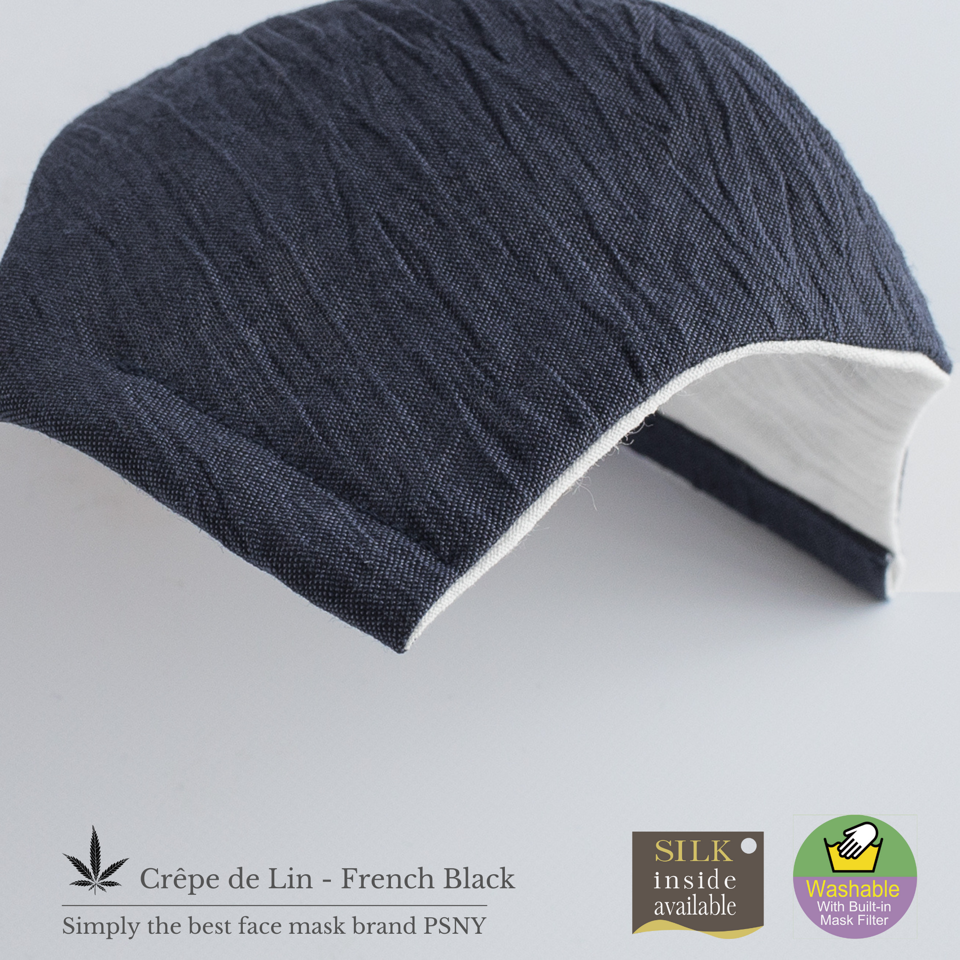 這款口罩採用最優質的材料製成,由 100% 通過嬰兒檢驗的細亞麻製成,並通過傳統的“手捲”柔軟完成。內部是相同質量的原始“縮水”以提高舒適度。口罩的整個表面都縫有無紡布口罩過濾網,即使是擔心布口罩的人也可以放心使用。是好萊塢名流最愛的PSNY品牌獨有的完美度極高的作品。