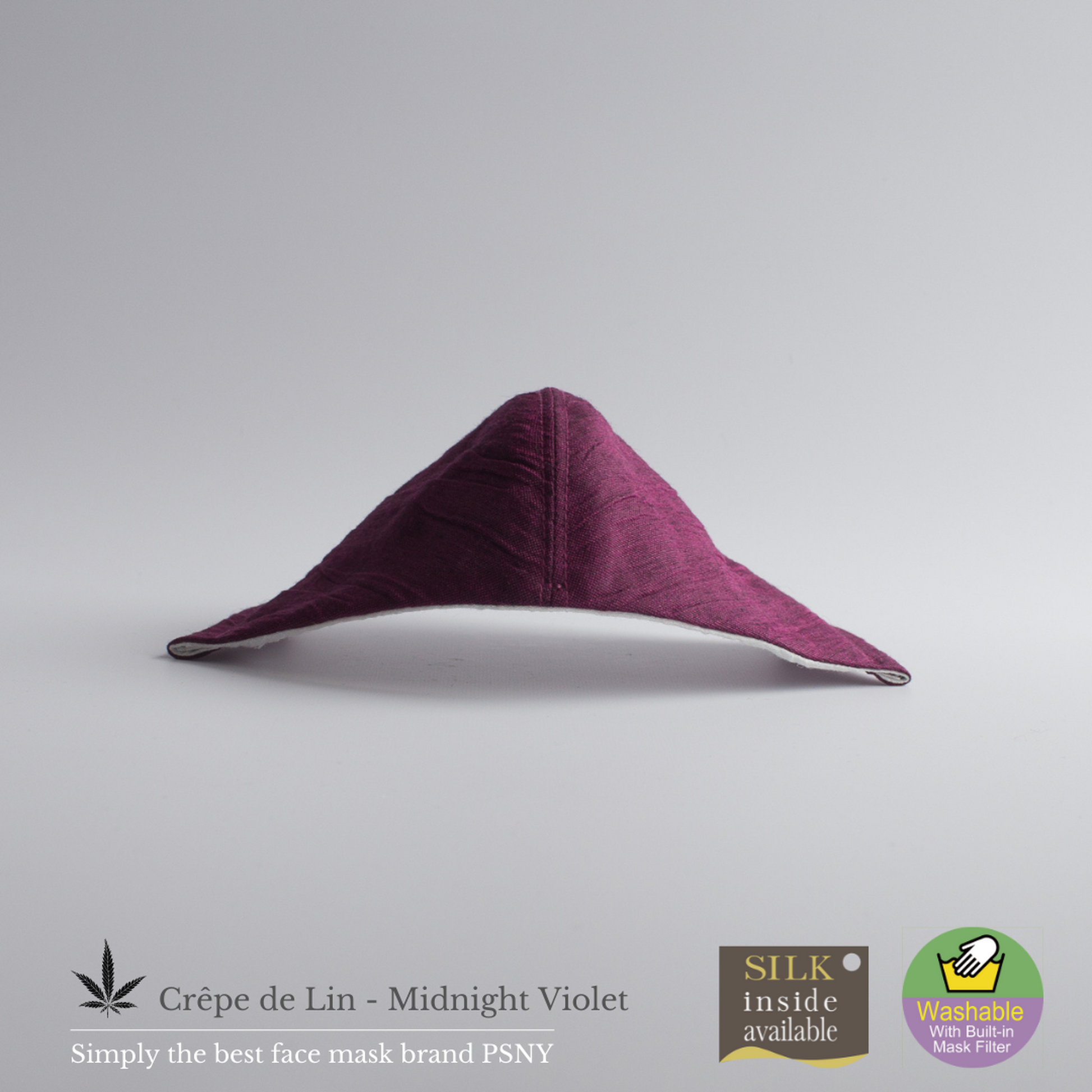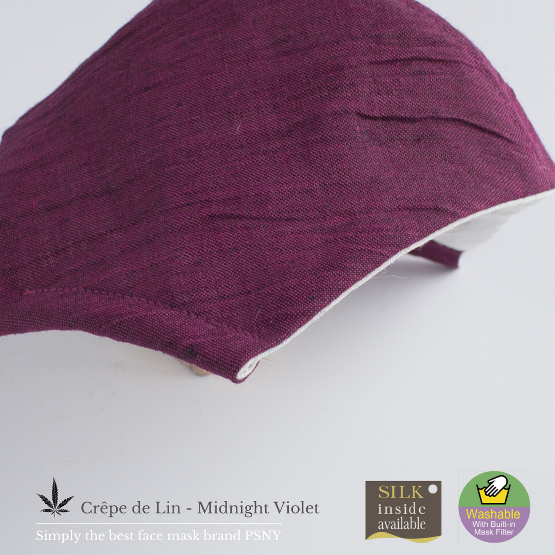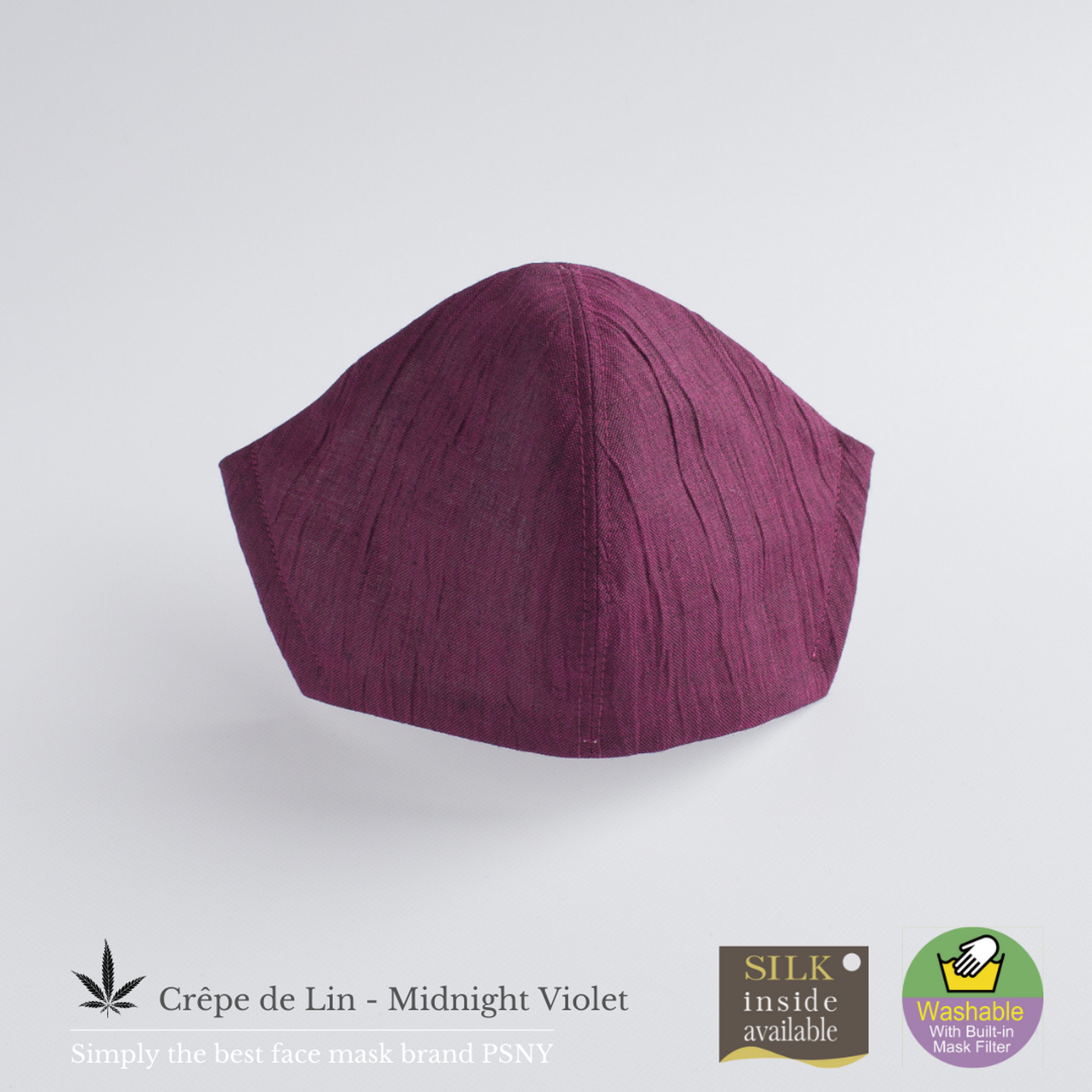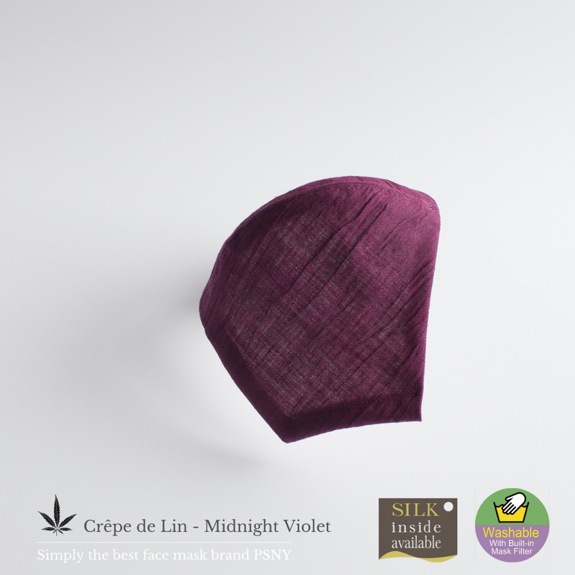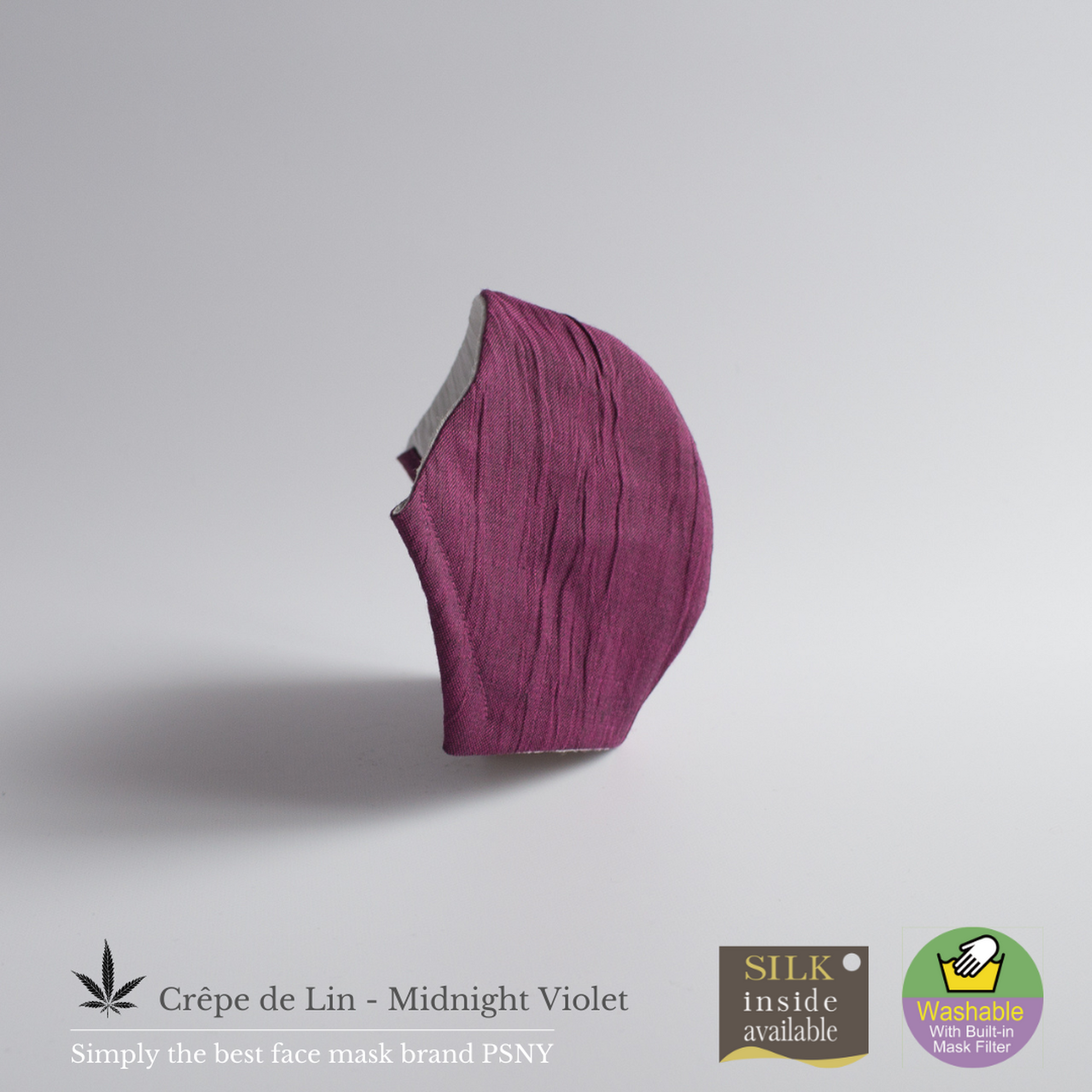 【Crepe de Lin-Midnight Violet】這款面膜採用最優質的材料,採用100%通過嬰兒檢驗的近江縮水亞麻製成,並採用傳統的“手揉”方式進行柔軟整理。是好萊塢名流最愛的PSNY品牌獨有的完美度極高的作品。