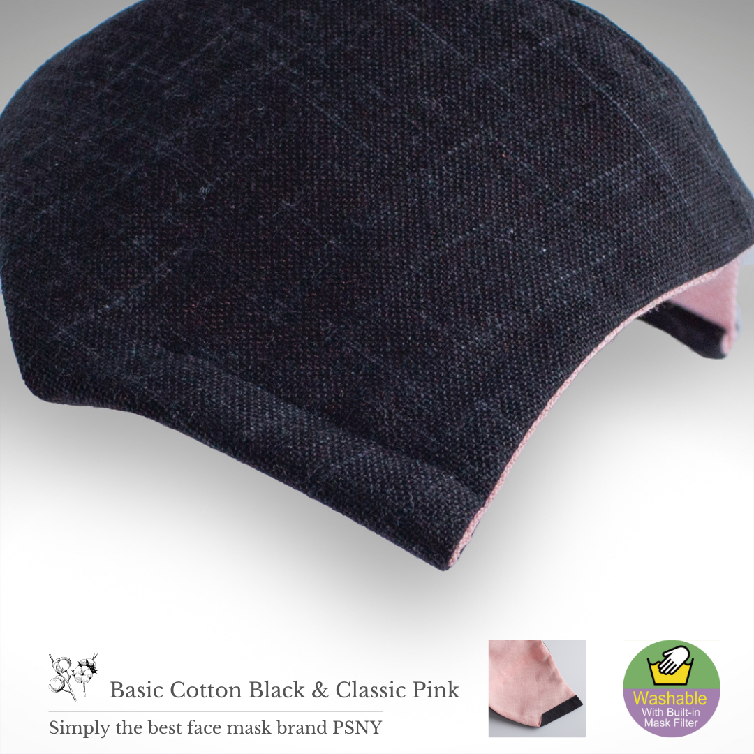 【基本款純棉黑色&經典粉紅色面膜】PSNY的經典款基本款純棉採用京都產“murazome”風格面料。深色和淺色之間的微妙平衡突出了優雅的輪廓。它帶有可靠的過濾器,蓬鬆柔軟,但即使反复洗滌也不會變形。是好萊塢名流最愛的PSNY品牌獨有的完美度極高的作品。