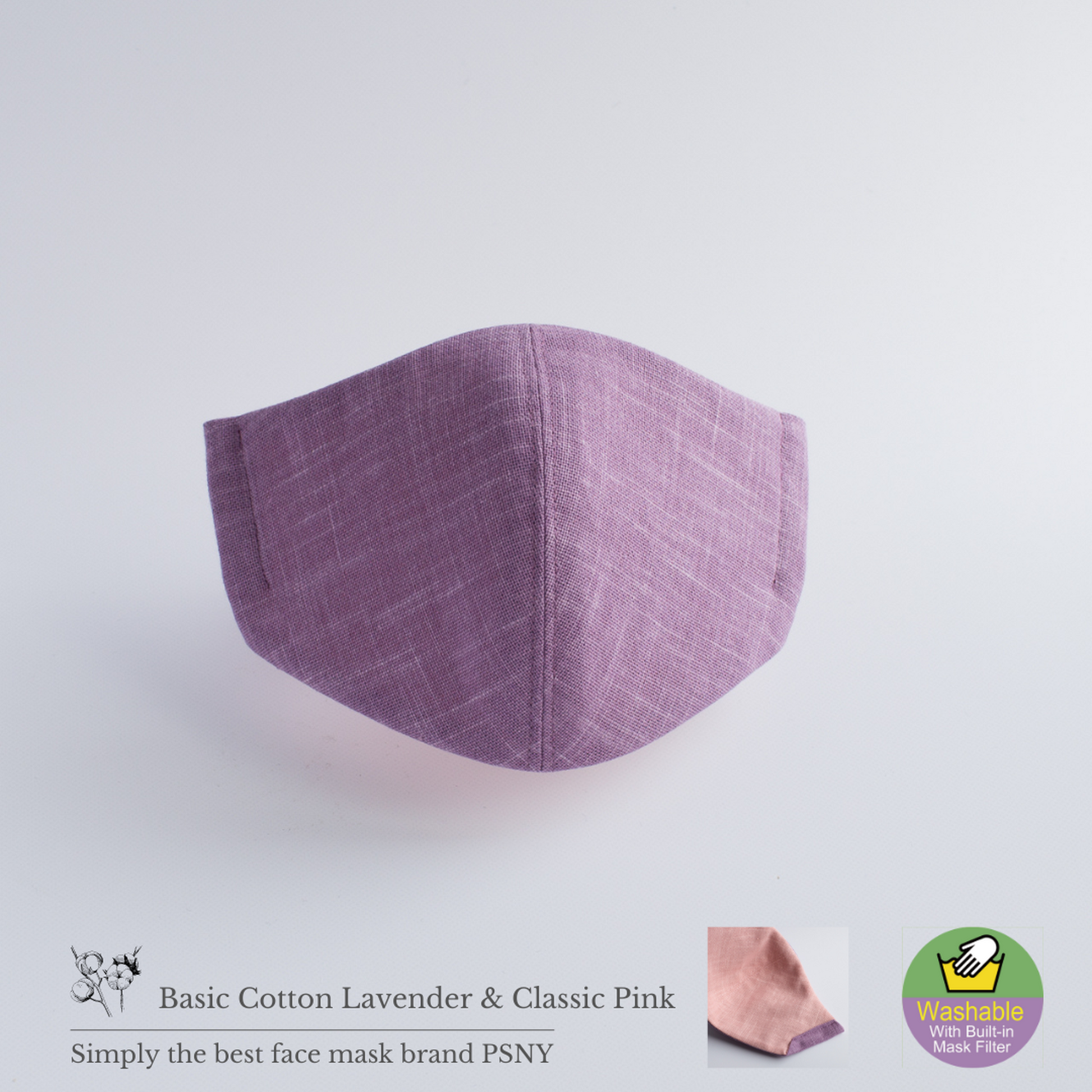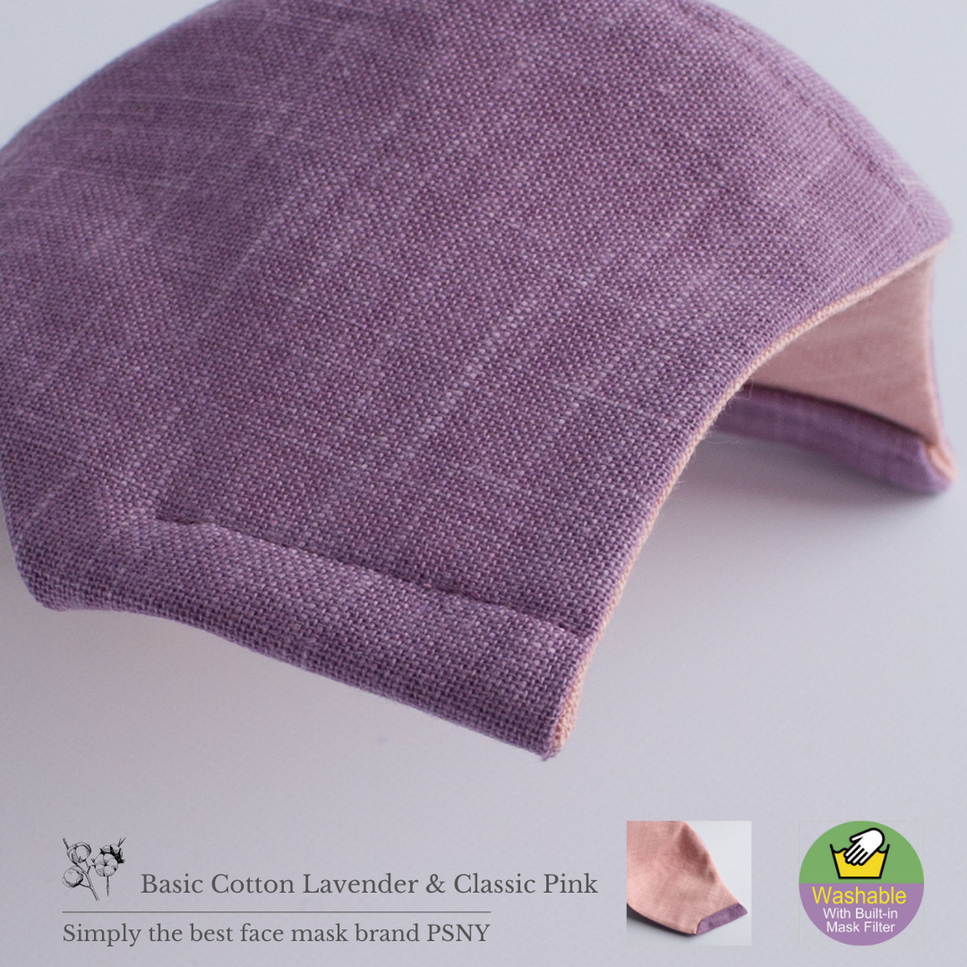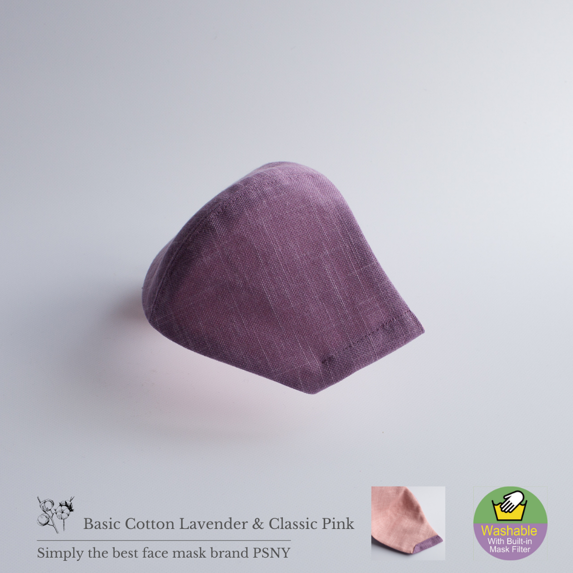 【基本款純棉薰衣草&經典粉紅面膜】PSNY的經典款基本款純棉採用京都產“murazome”風格面料。深色和淺色之間的微妙平衡突出了優雅的輪廓。