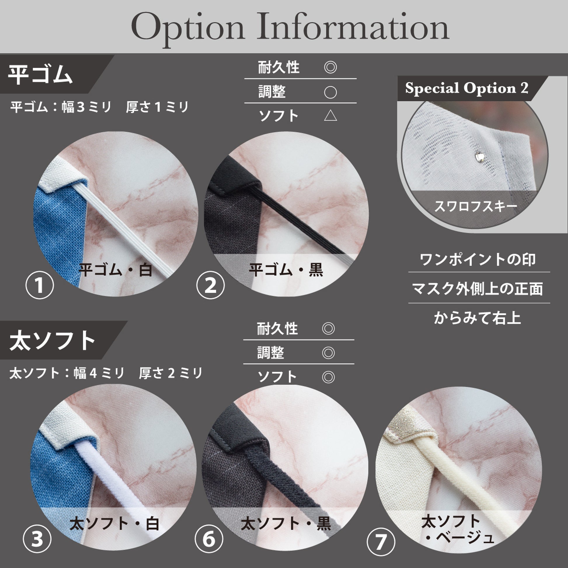 マスク全体にスワロフスキーを贅沢に装飾するオプションを全商品に対象にお選びいただけます。