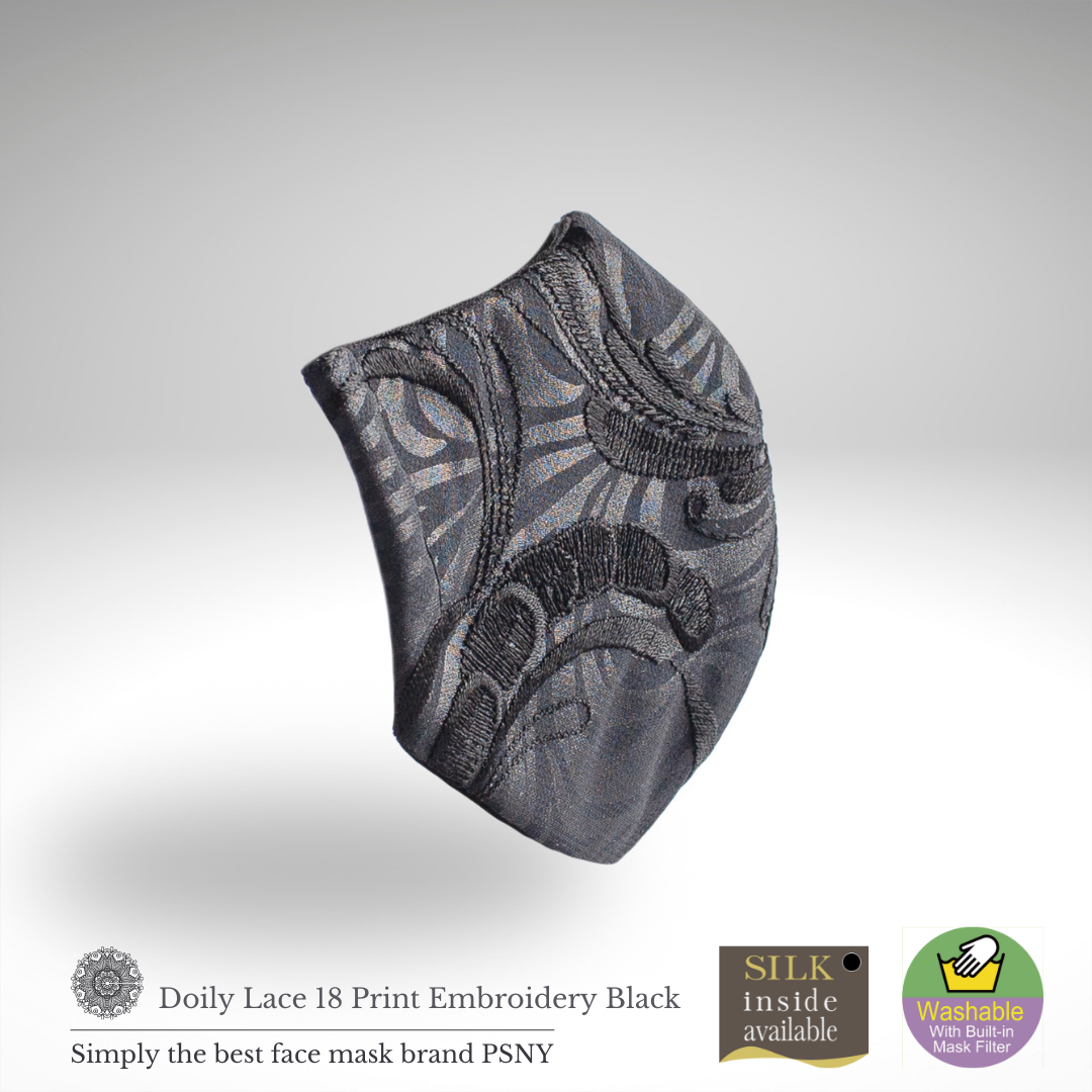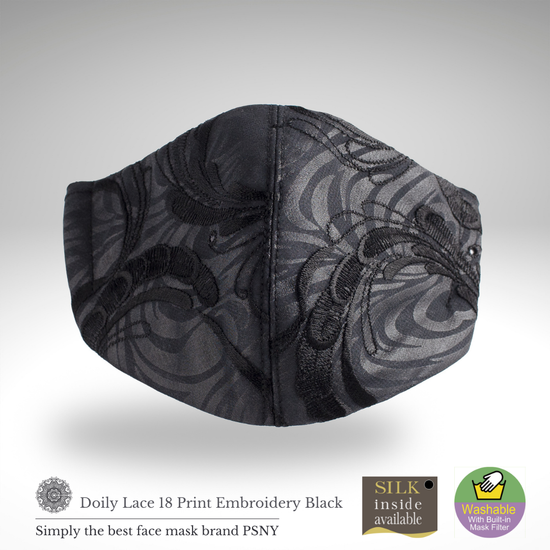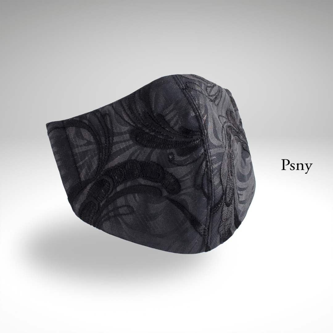 由優質面料製成的面具,在美麗的大理石印花上均勻排列密集刺繡。設計具有廣泛的協調性,從古典服飾到現代風格。