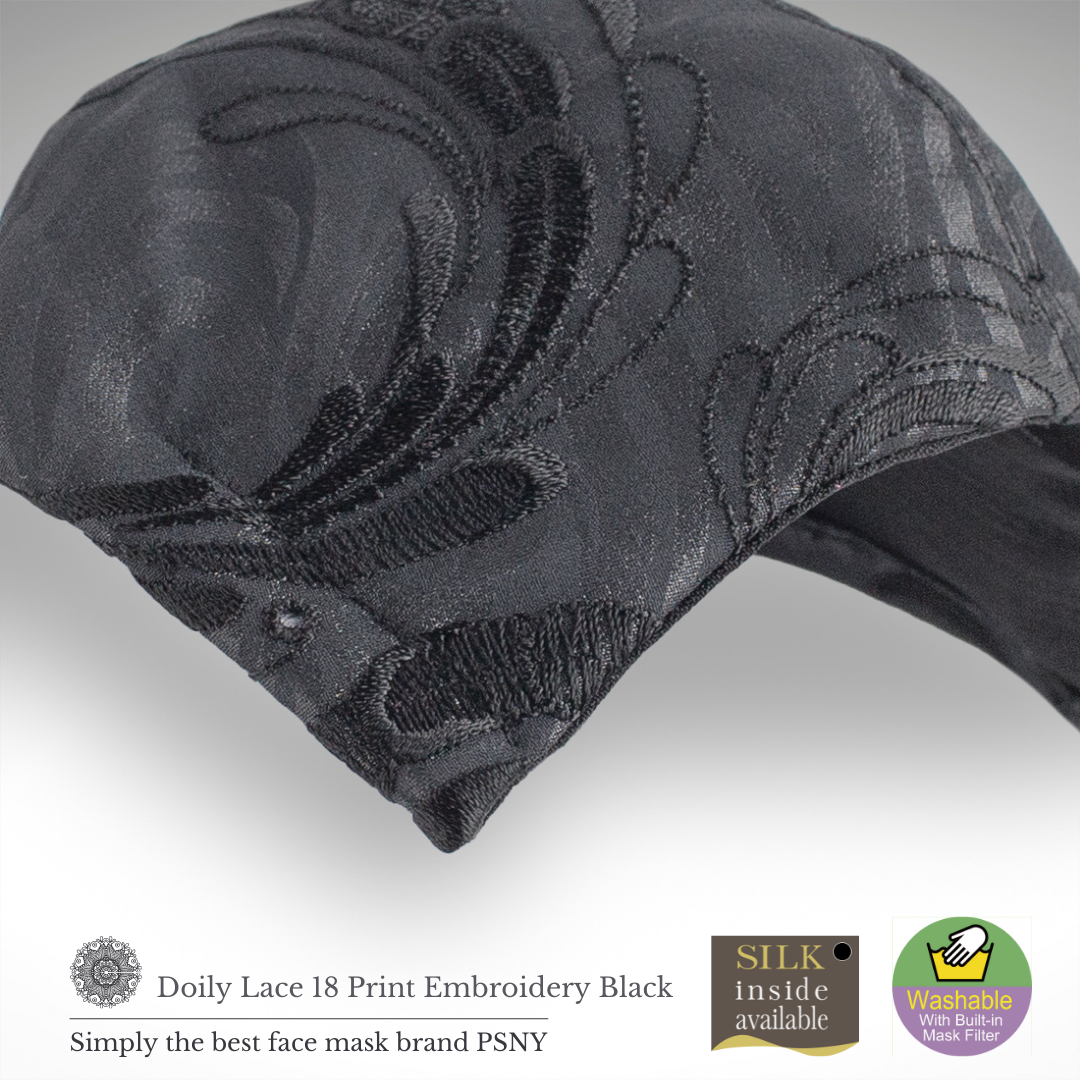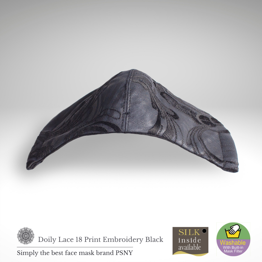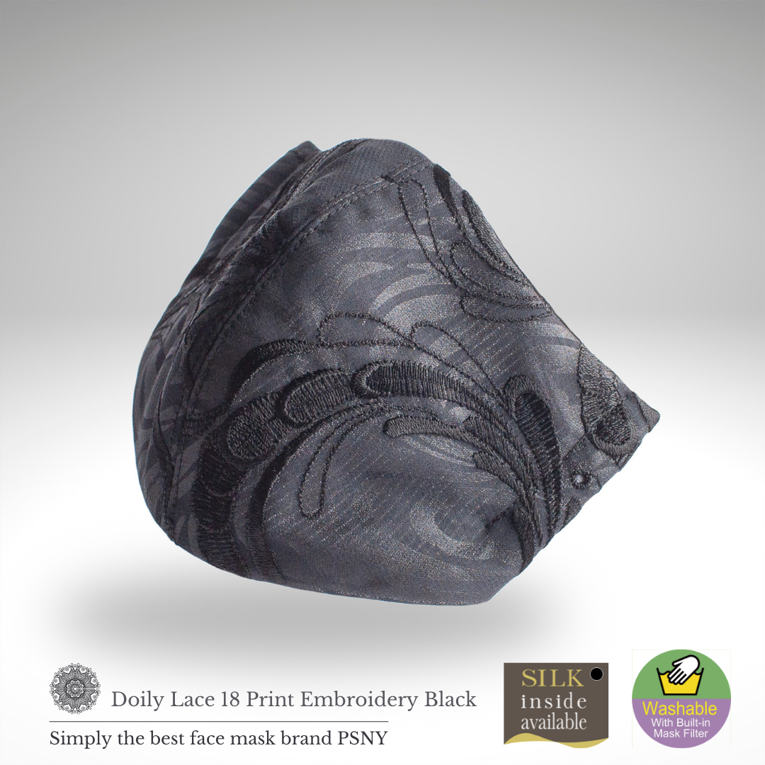 由優質面料製成的面具,在美麗的大理石印花上均勻排列密集刺繡。設計具有廣泛的協調性,從古典服飾到現代風格。