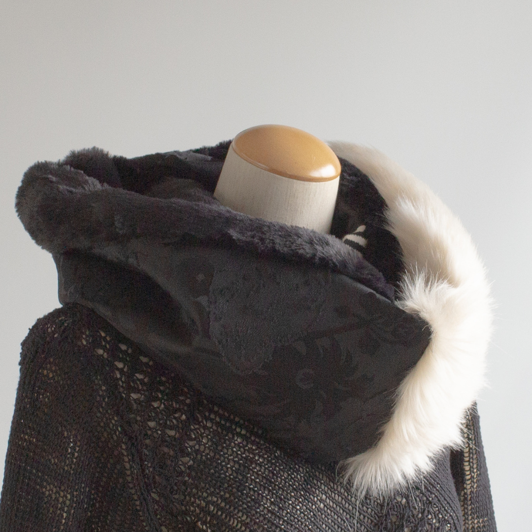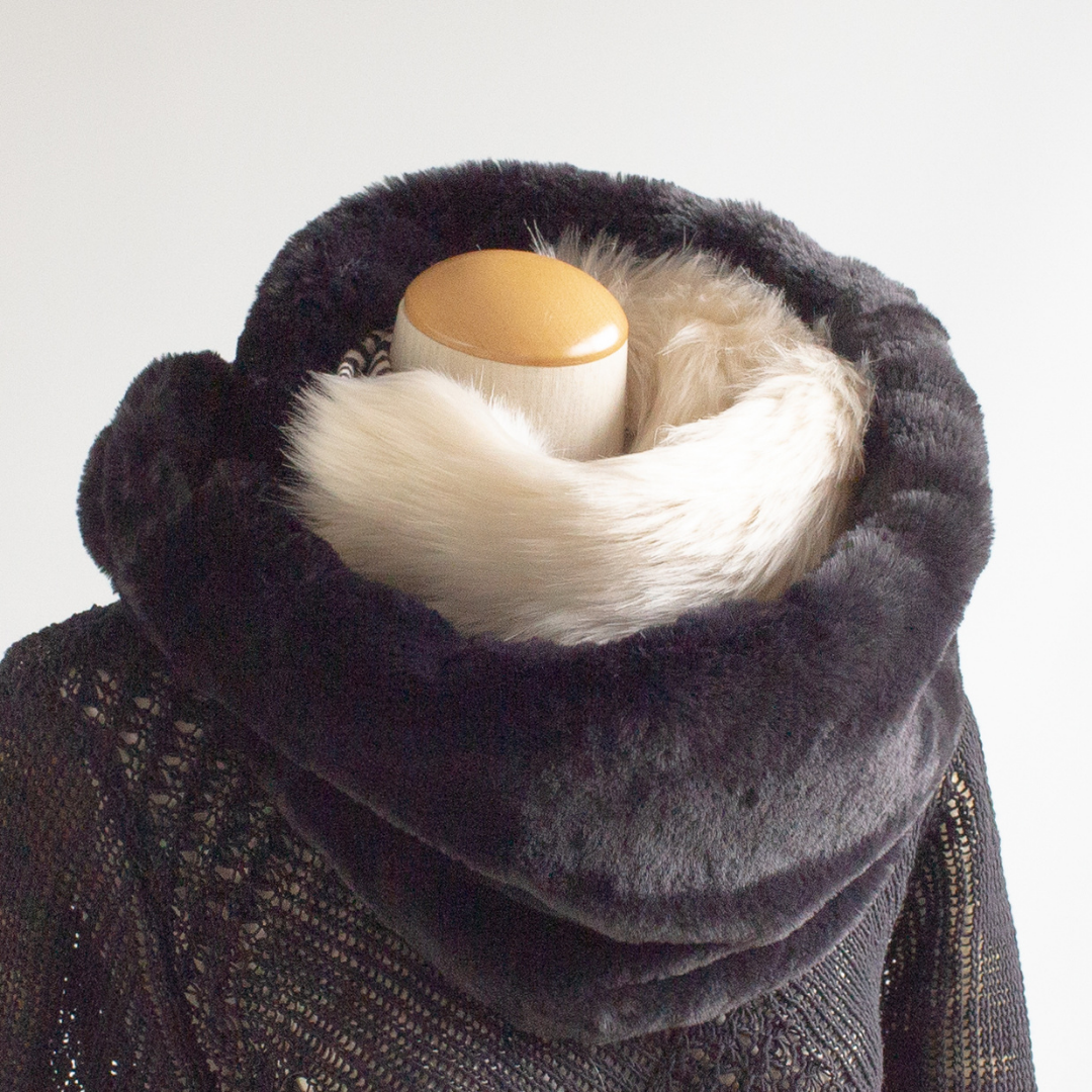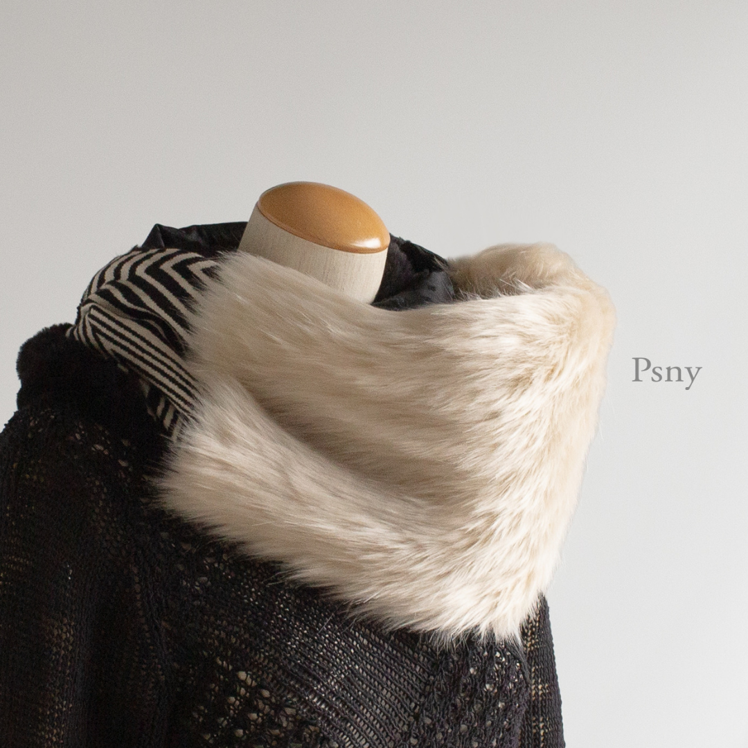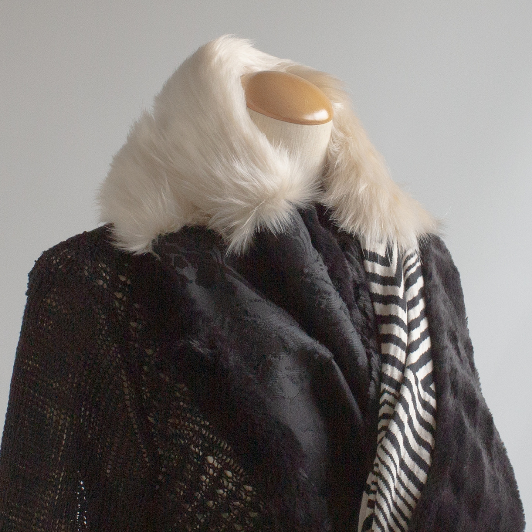 雙面環繞式圍脖,結合長絨毛白色和黑色生態毛皮。