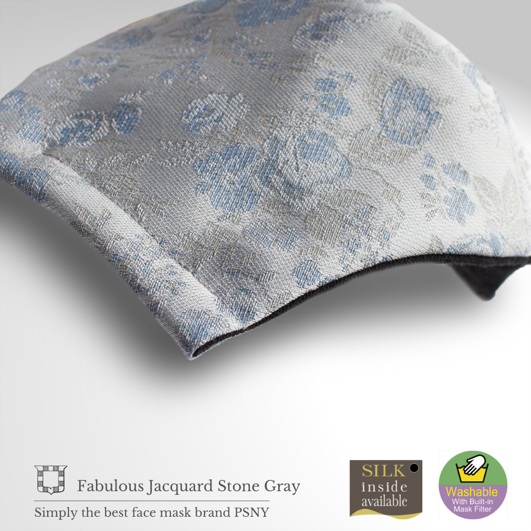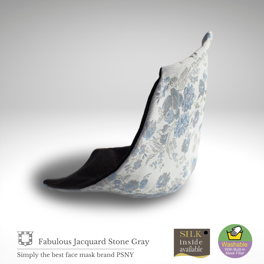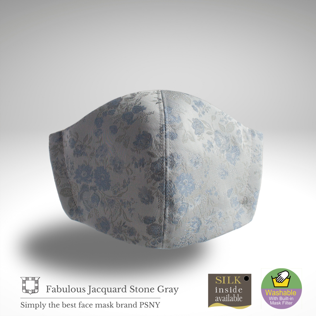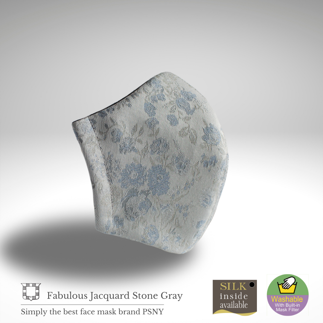 【Fabulous Jacquard Stone Grey】材質雖薄,但質地光滑柔軟,美麗的法式掛毯式設計以提花編織而非印花表現。石灰的古色古香的感覺,用摩登新穎的配色給人前衛印象的面具。是好萊塢名流最愛的PSNY品牌獨有的完美度極高的作品。 (數量有限)