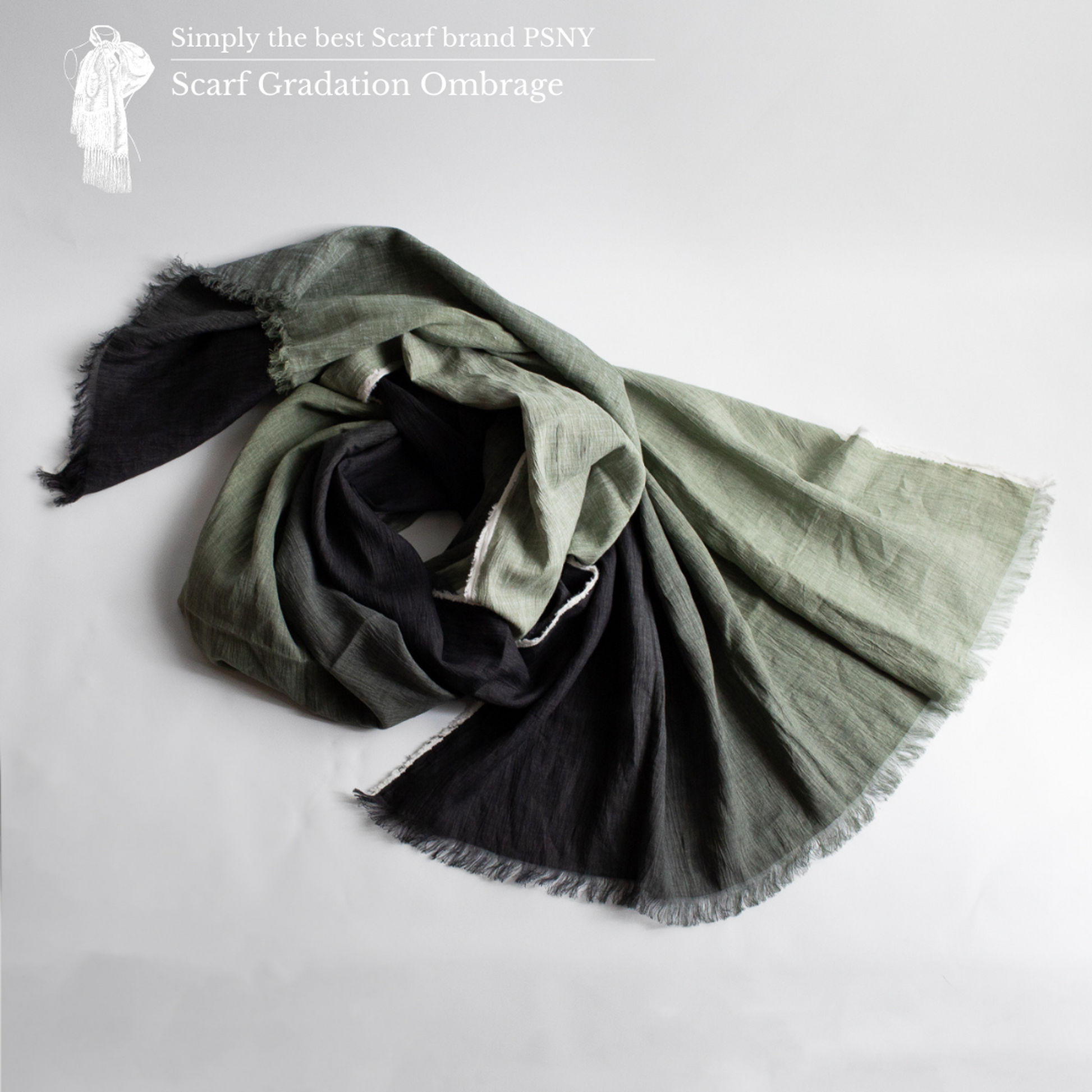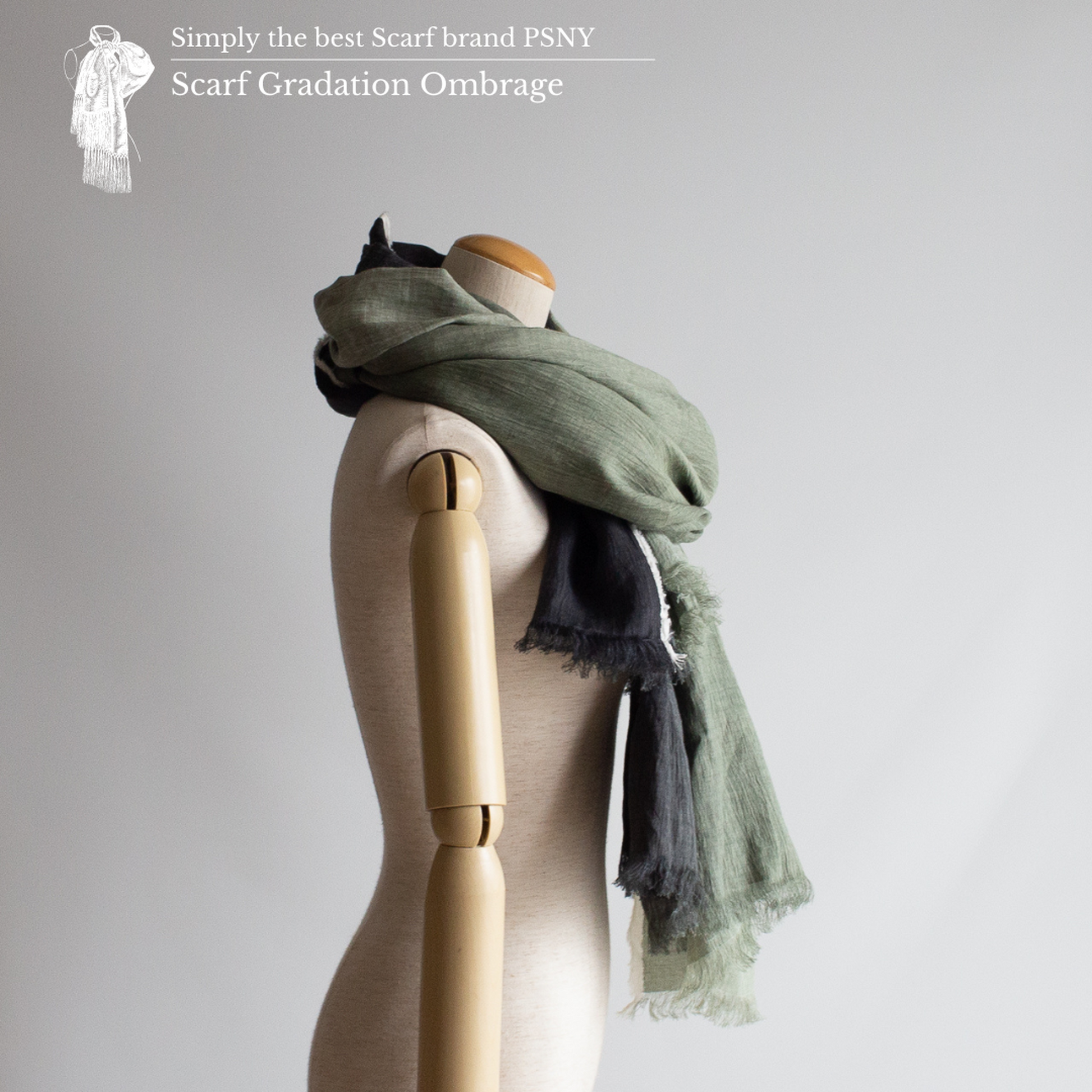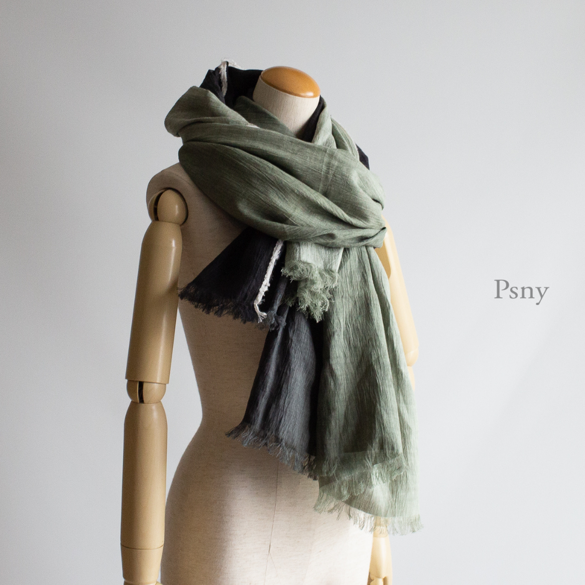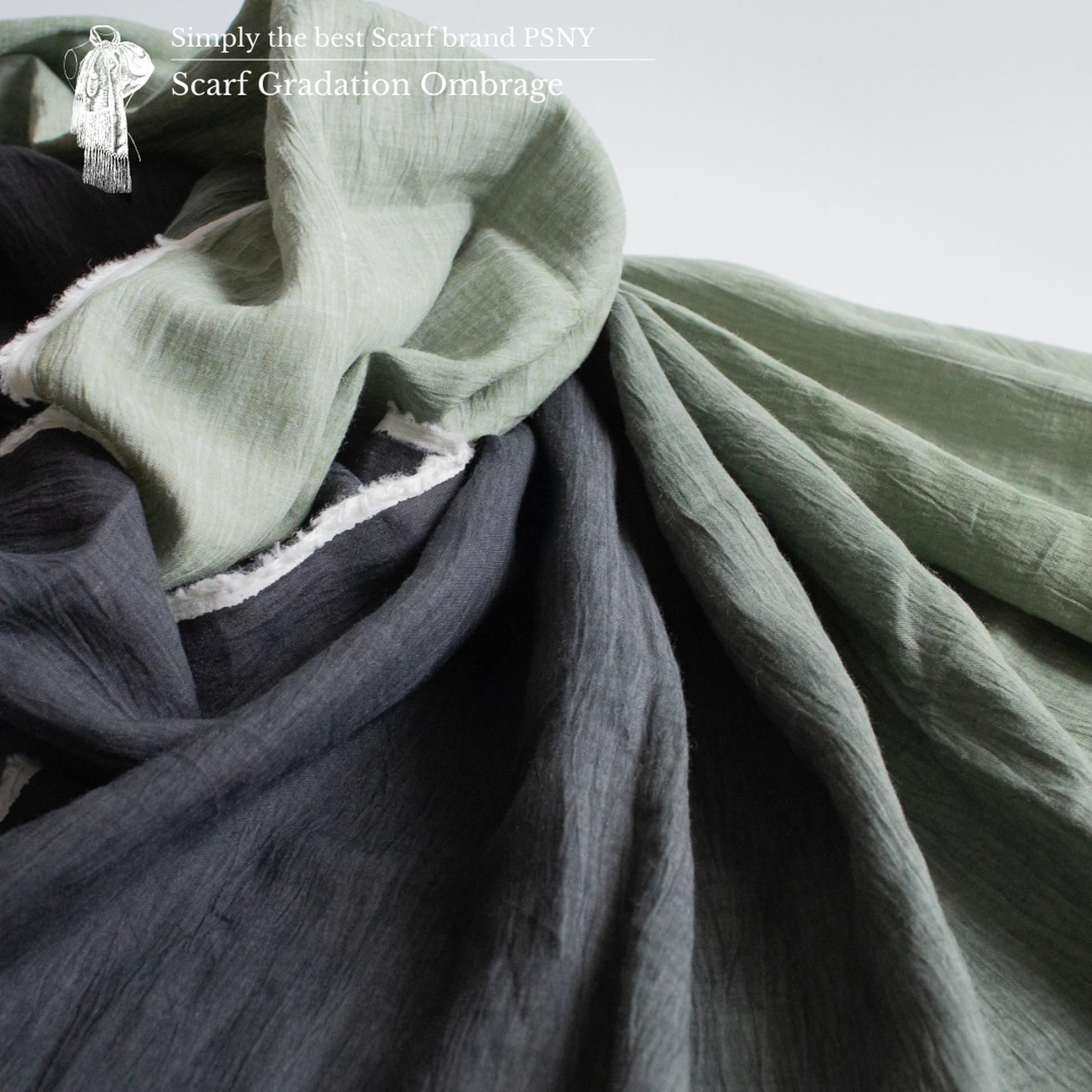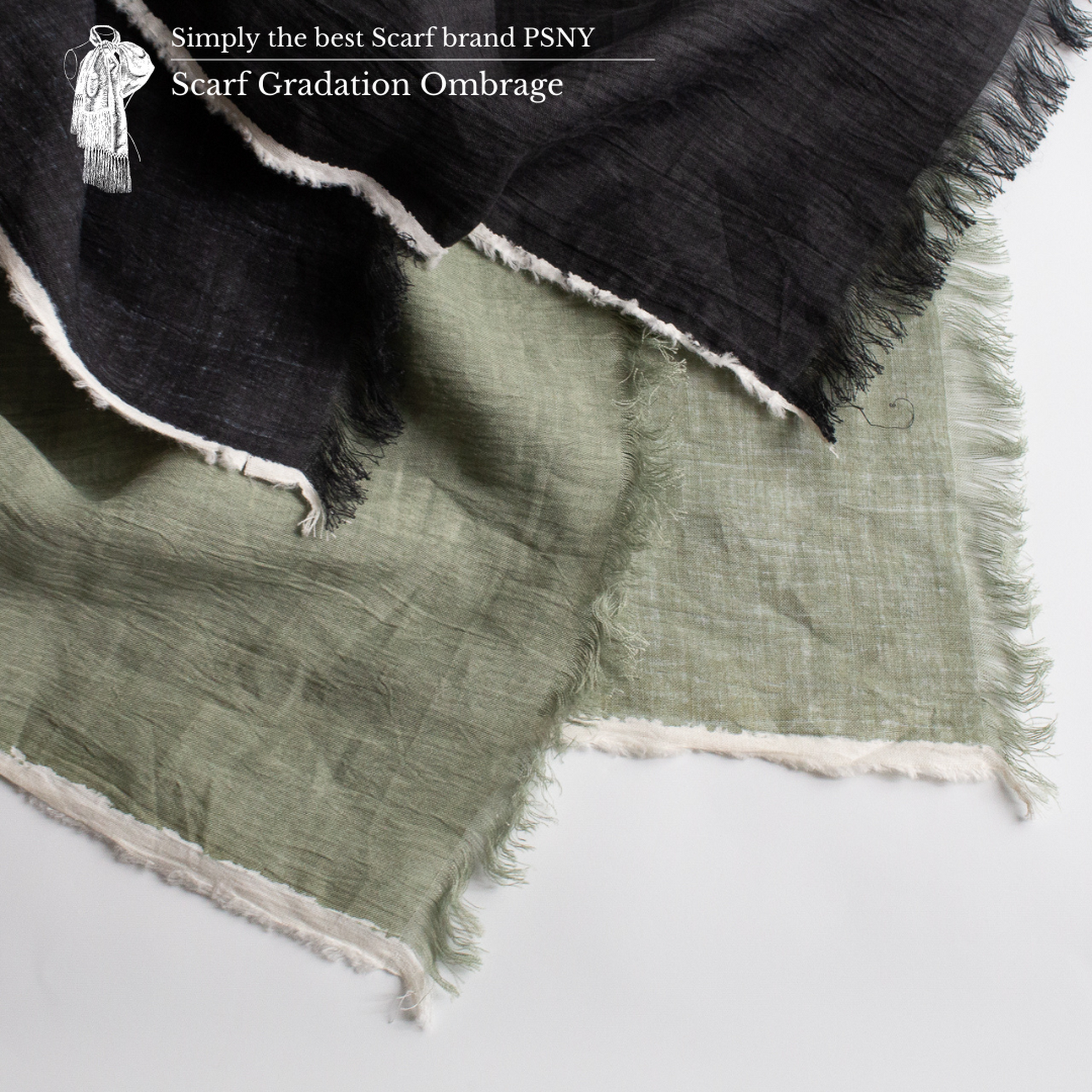 [長圍巾 Gradation Crepe de Lin Ombrage] 這款長圍巾採用 100% 近江優質亞麻製成,並採用傳統的“手捲”柔軟處理。
