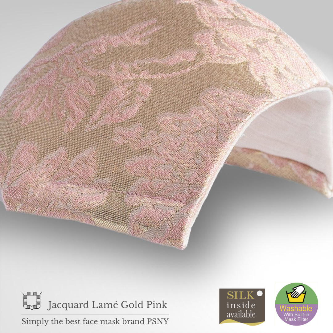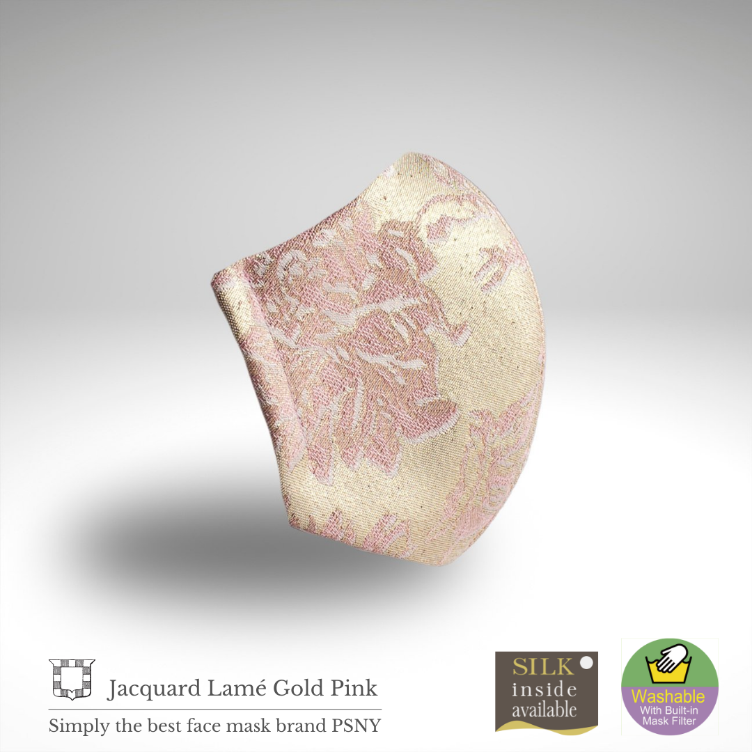 [Fabulous L'Argent Gold Pink Mask] Fabulous 系列採用非常柔軟的意大利提花織物製成的稀有面料。華麗的金色和粉紅色碎花為這款面具帶來優雅的印象。是好萊塢名流最愛的PSNY品牌獨有的完美度極高的作品。 (數量有限)