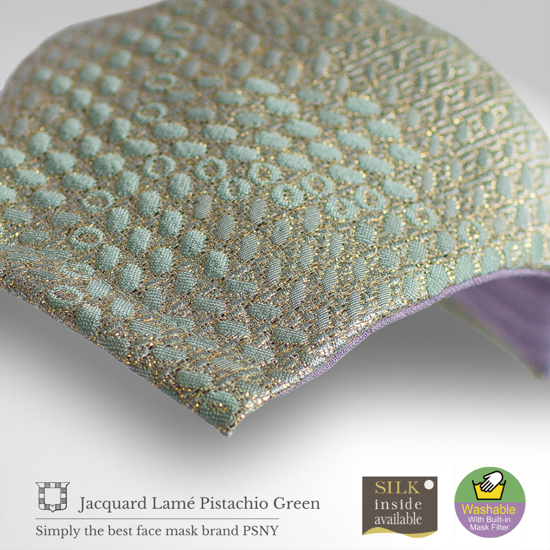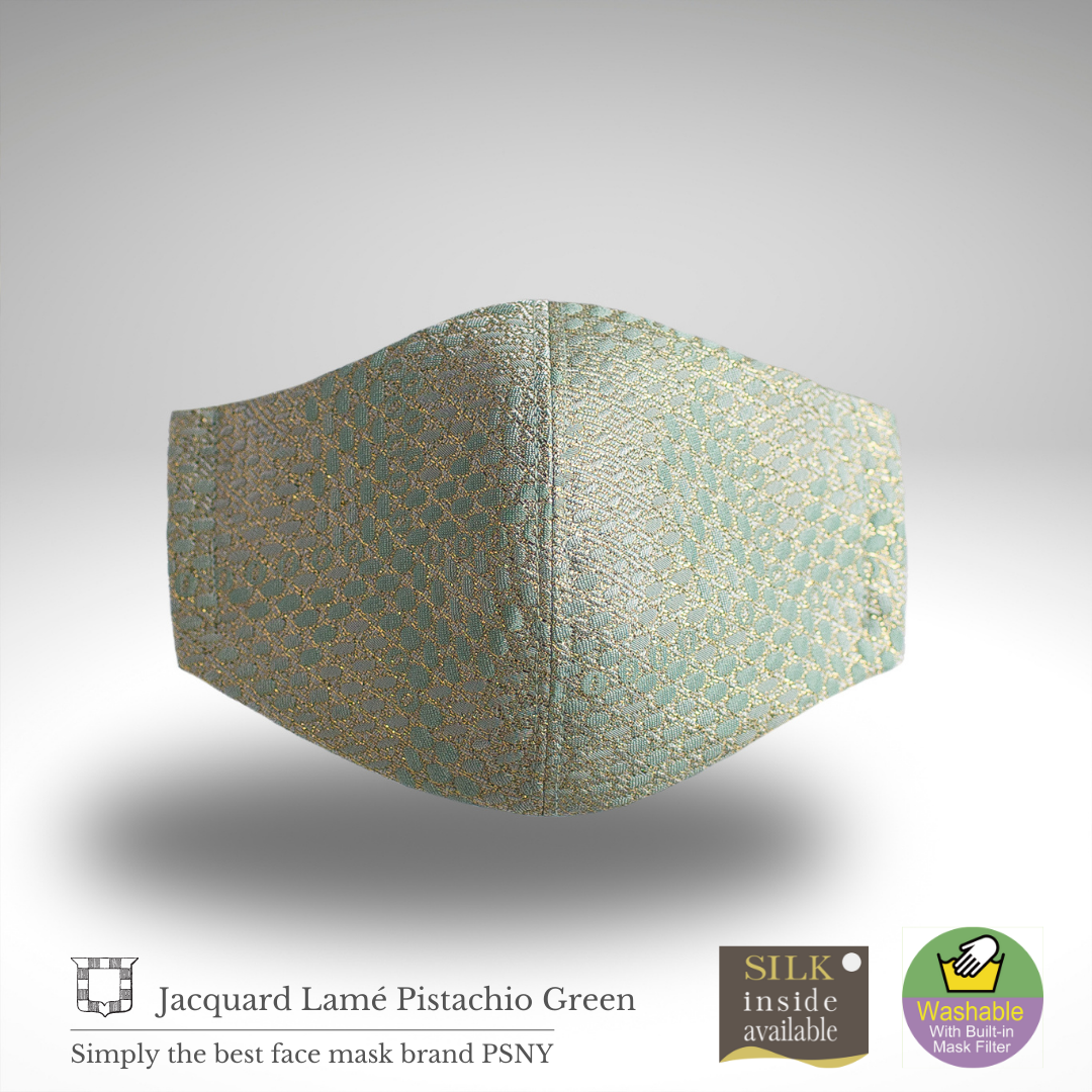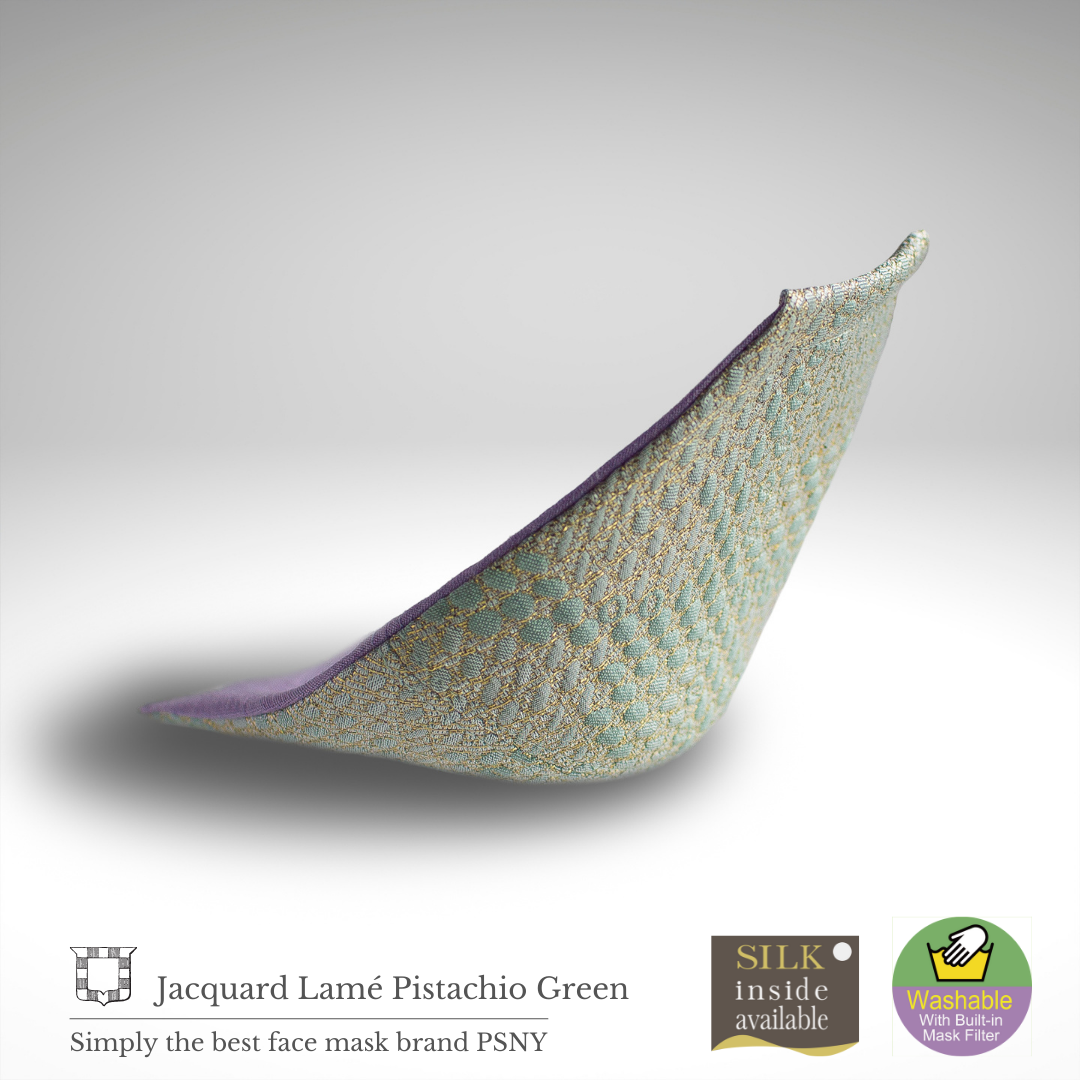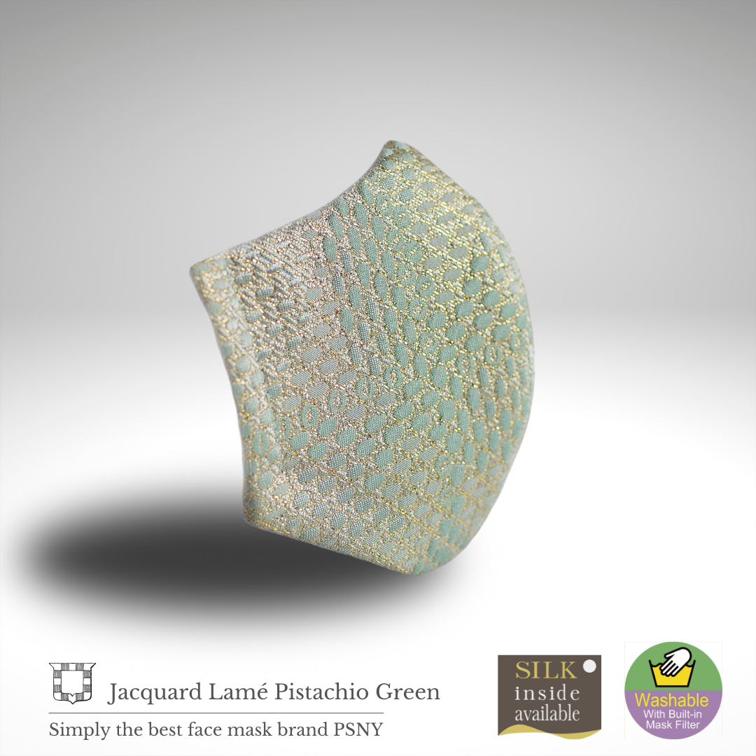 [Fabulous L'Argent Pistachio Green] 一款優雅的面具,採用柔軟、高品質、優雅的編織工藝,採用排列精美的金絲線。是好萊塢名流最愛的PSNY品牌獨有的完美度極高的作品。 (數量有限)