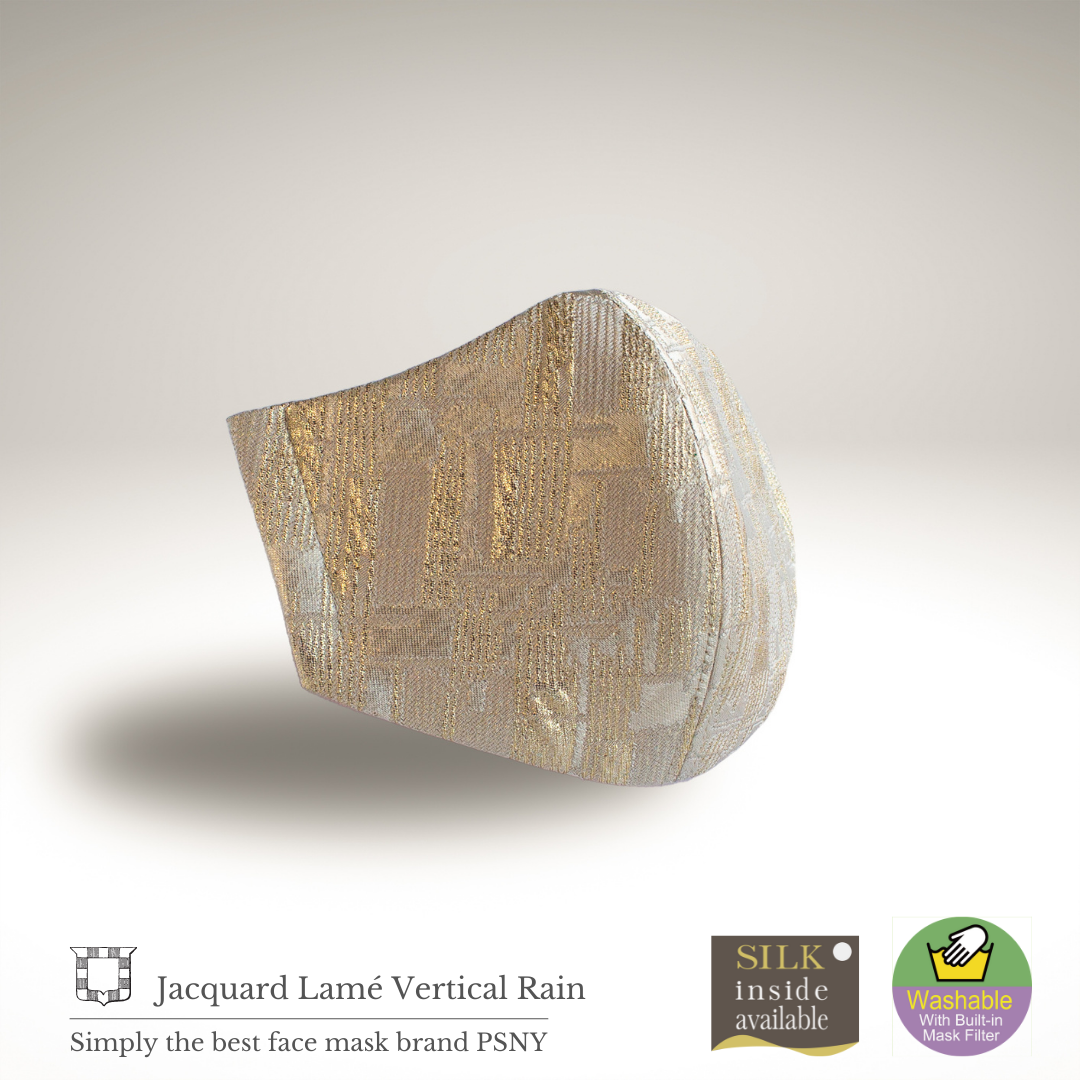一款設計優雅的面具,將像牙米色與銀色、金色和金色閃光相結合。