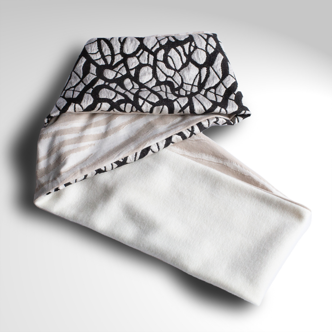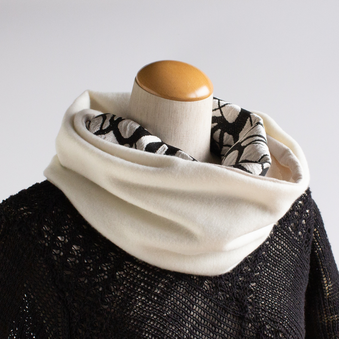 圍脖採用意大利單色大理石金絲提花面料和白色奢華羊毛製成,帶有羊絨觸感。