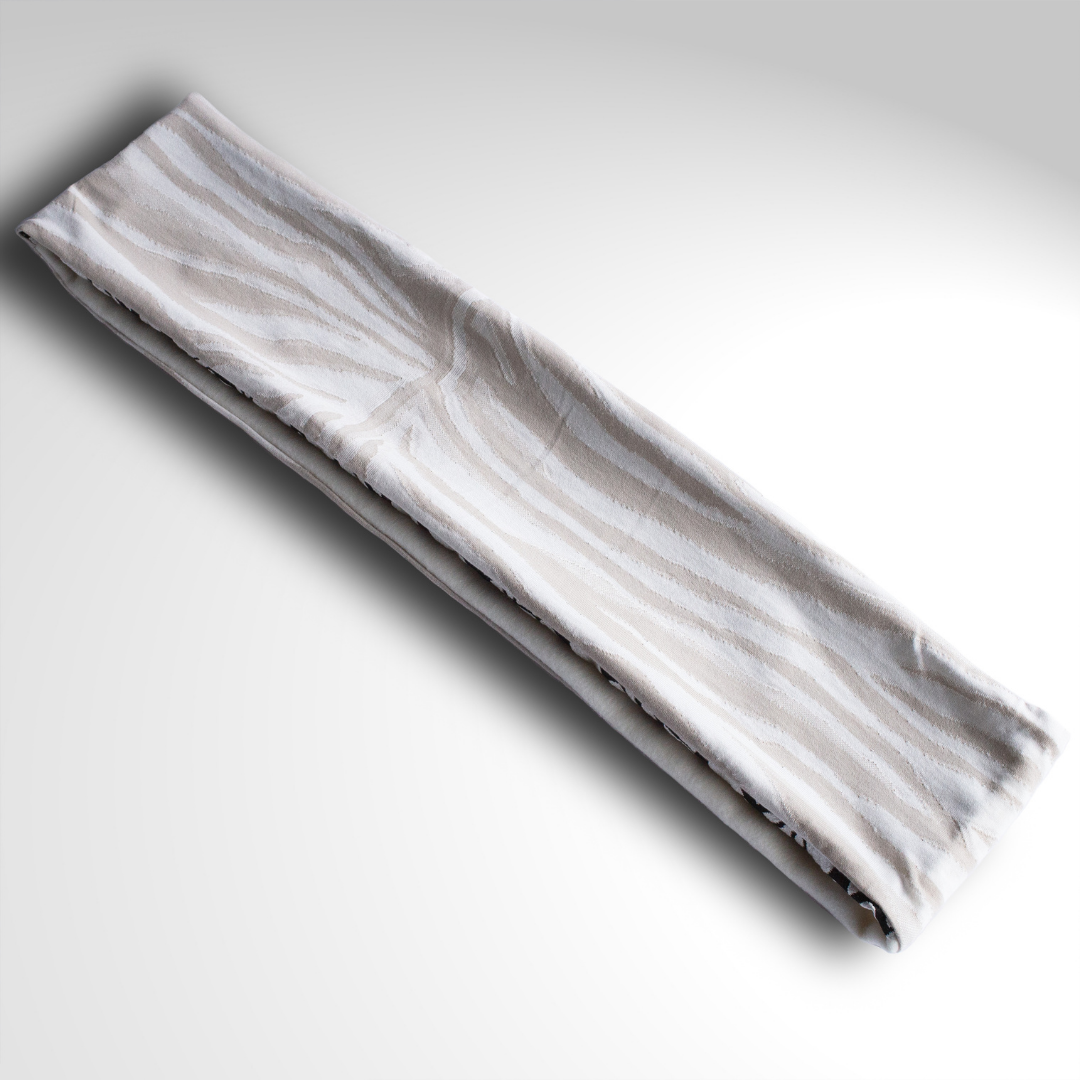 B 面是雙面棉 100 床單針織(大米色和白色斑馬紋)。
