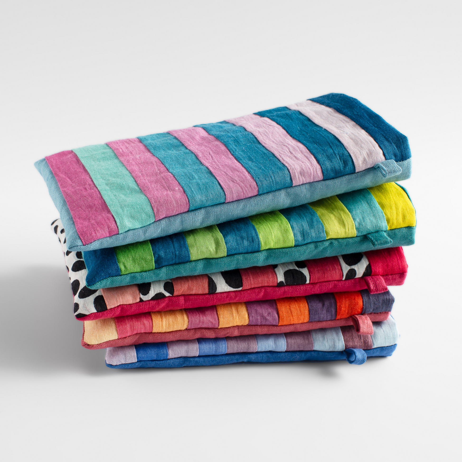 為了讓手捲亞麻清爽的漸變色變小,我們做了優雅的條紋拼布。