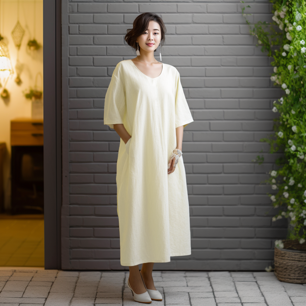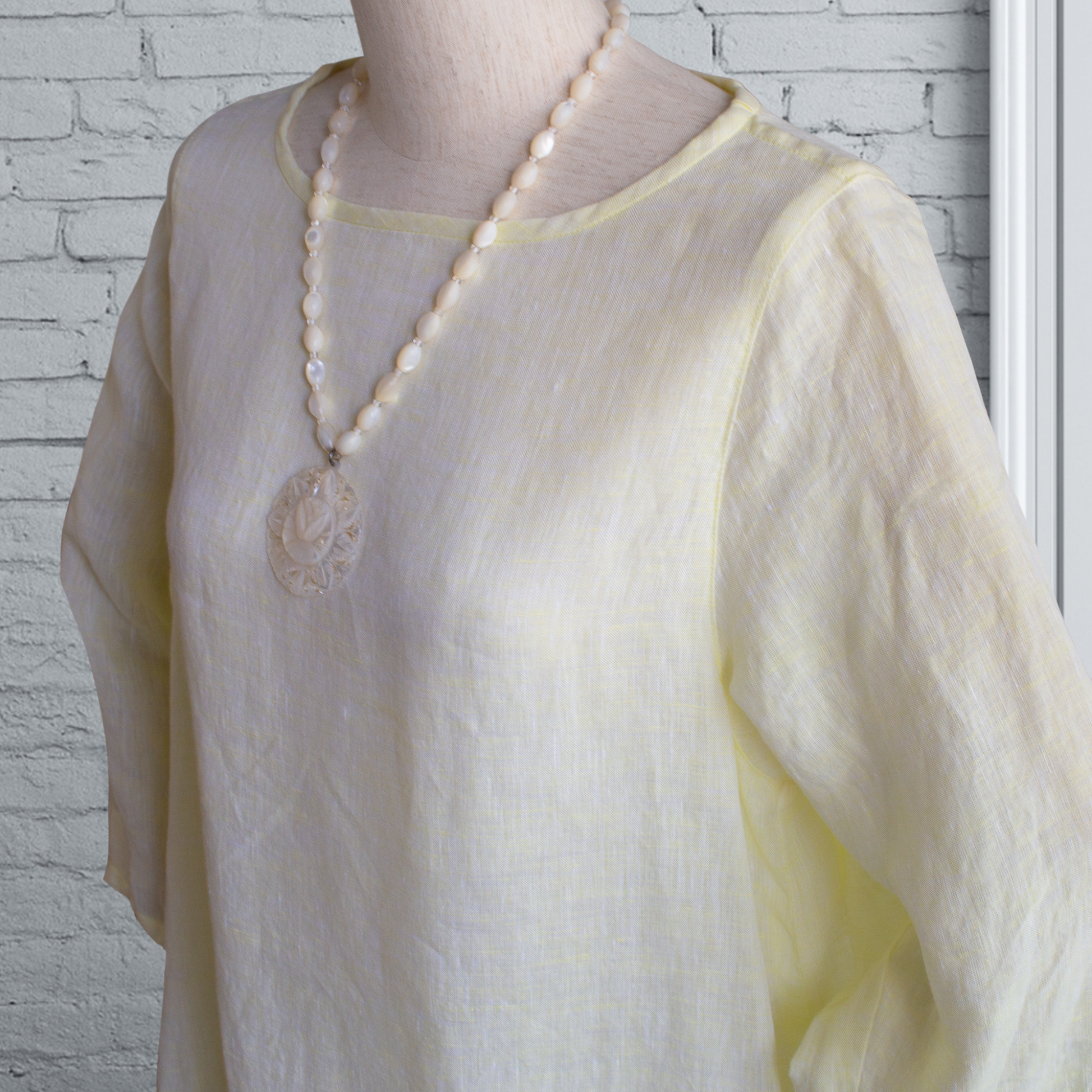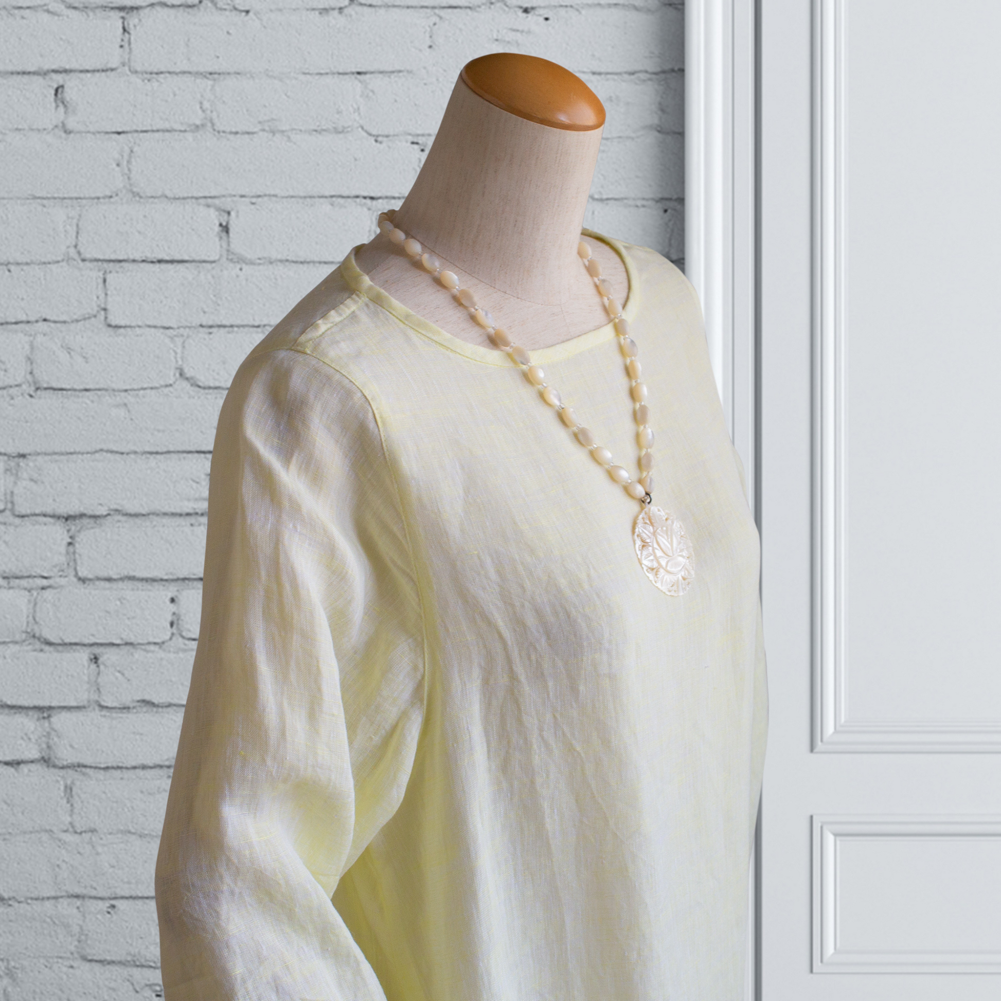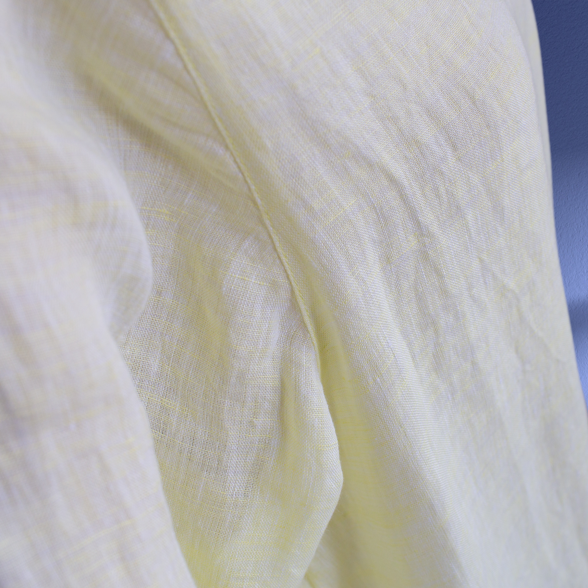 100% 亞麻細膩清爽的檸檬黃搭配褲裝和打底褲非常適合成人夏季穿搭。