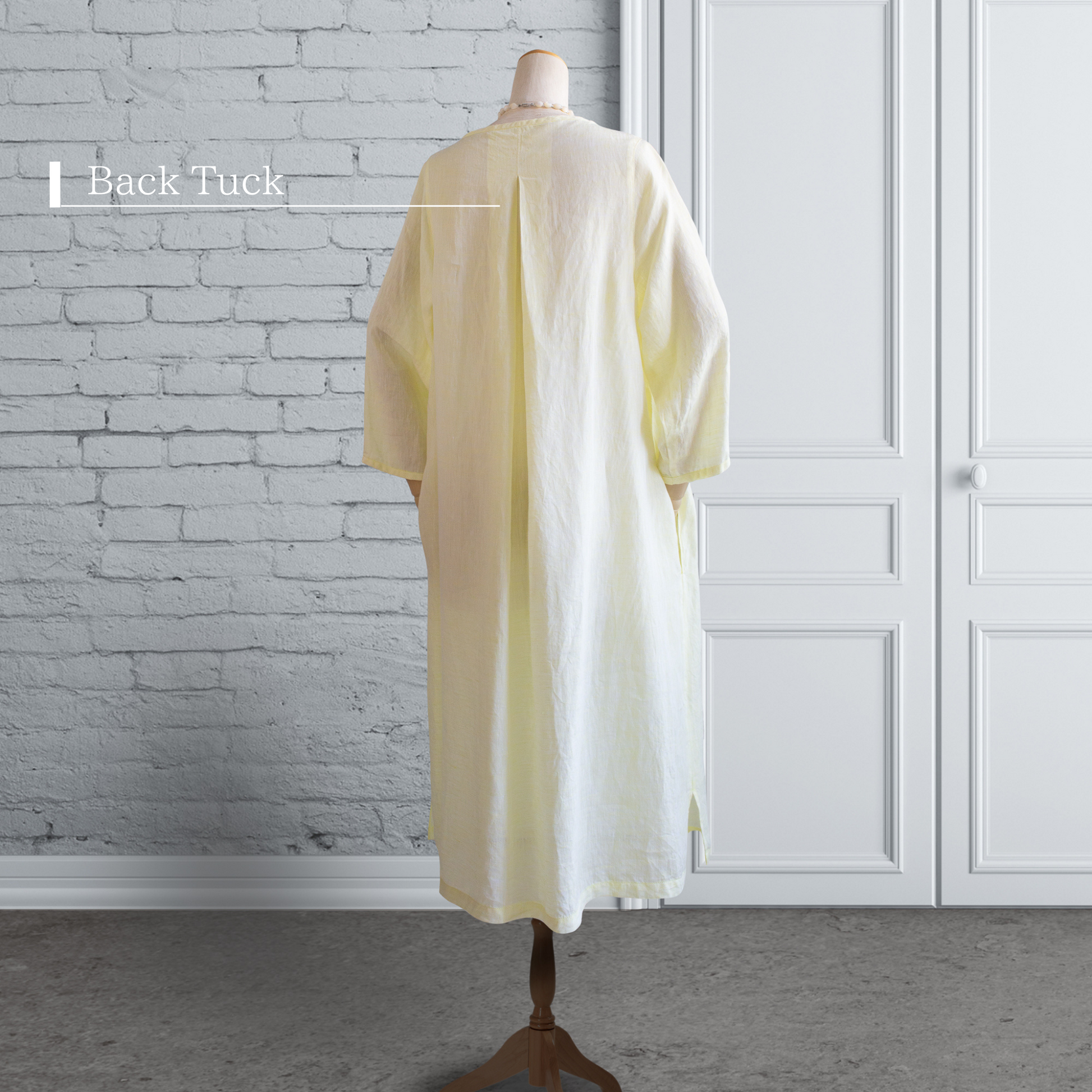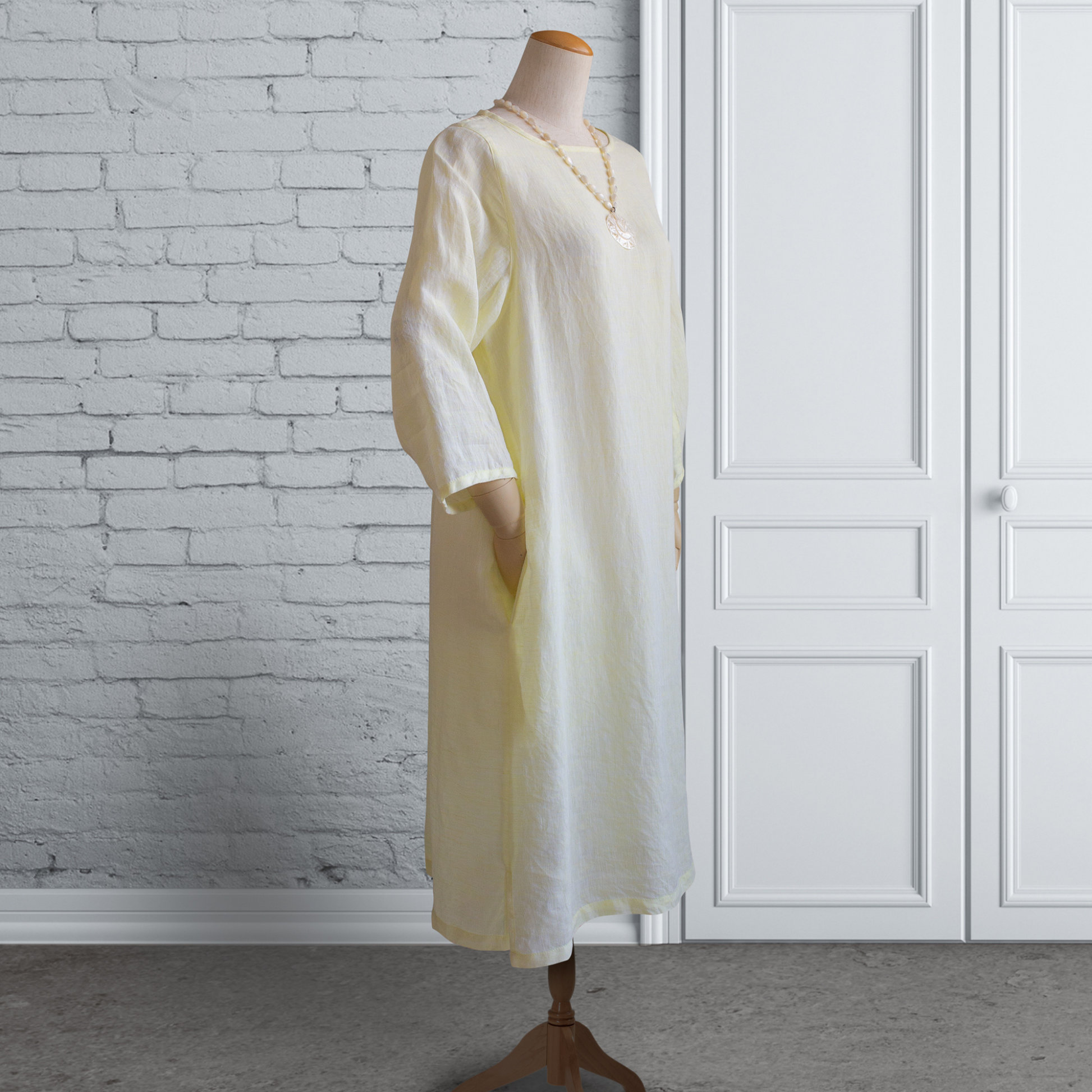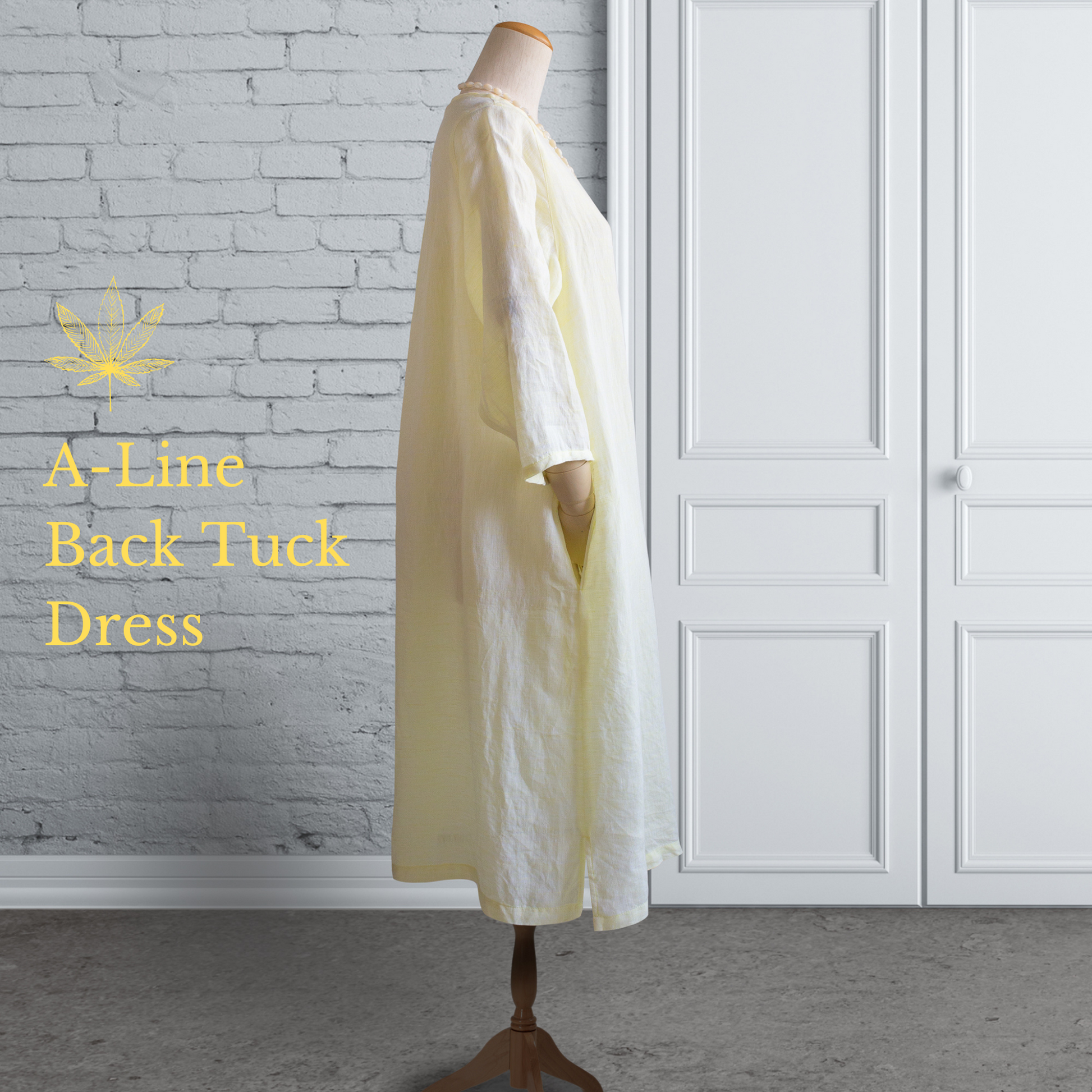 亞麻檸檬黃後褶裙 3/4 袖 AP09