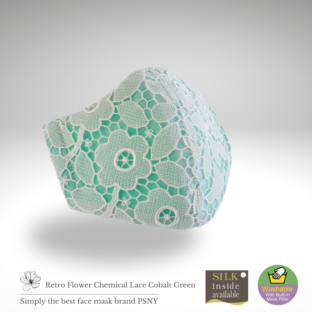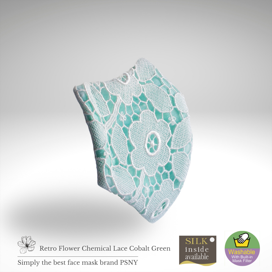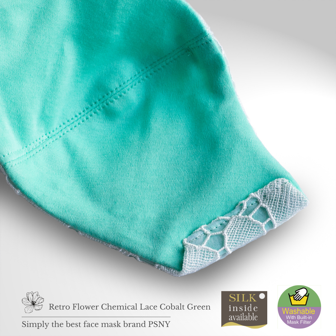 帶有懷舊復古設計化學花邊的鈷綠色面具。
