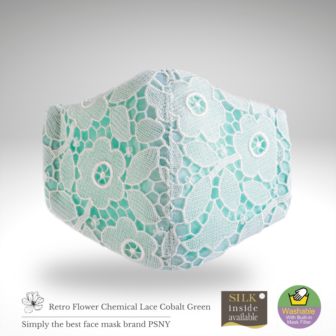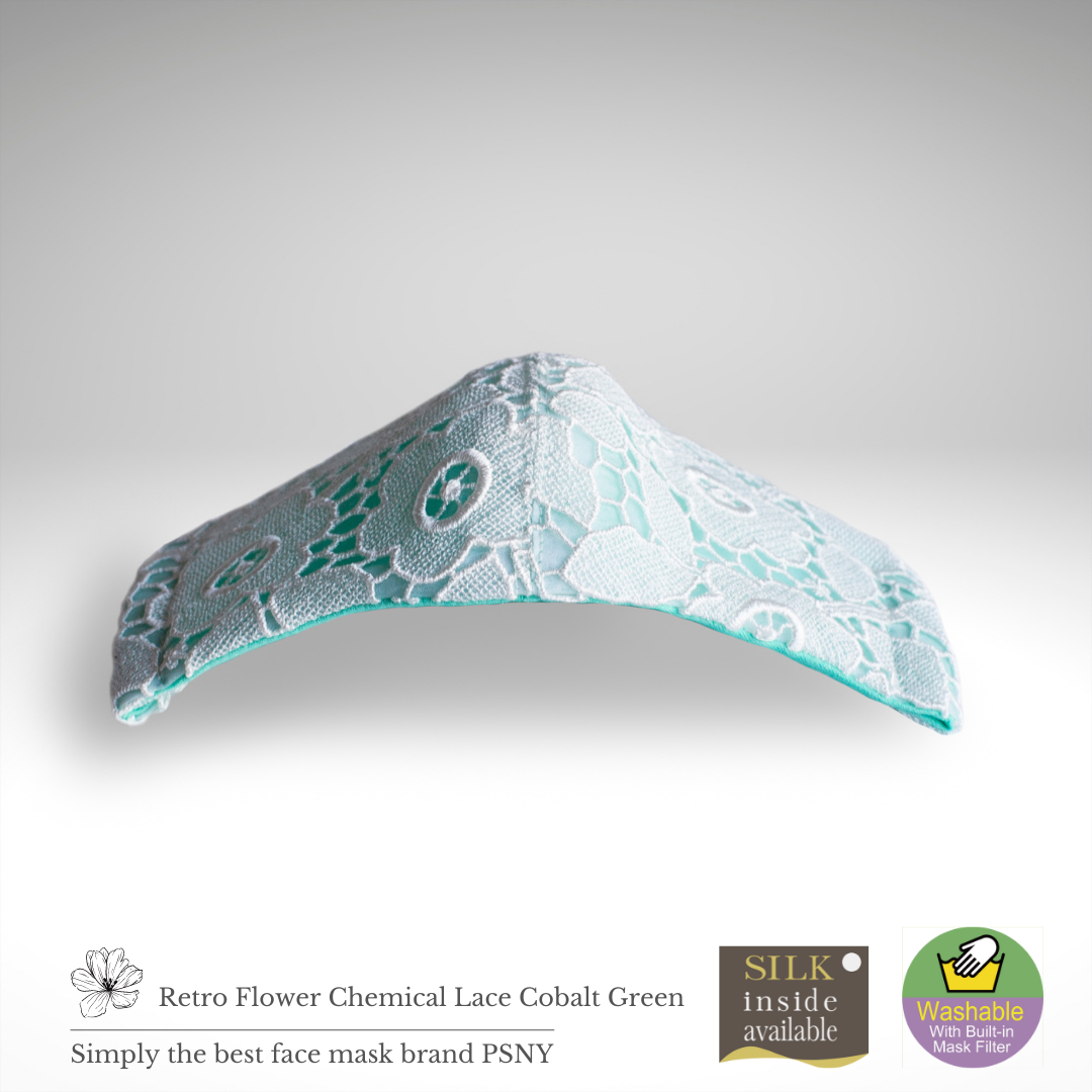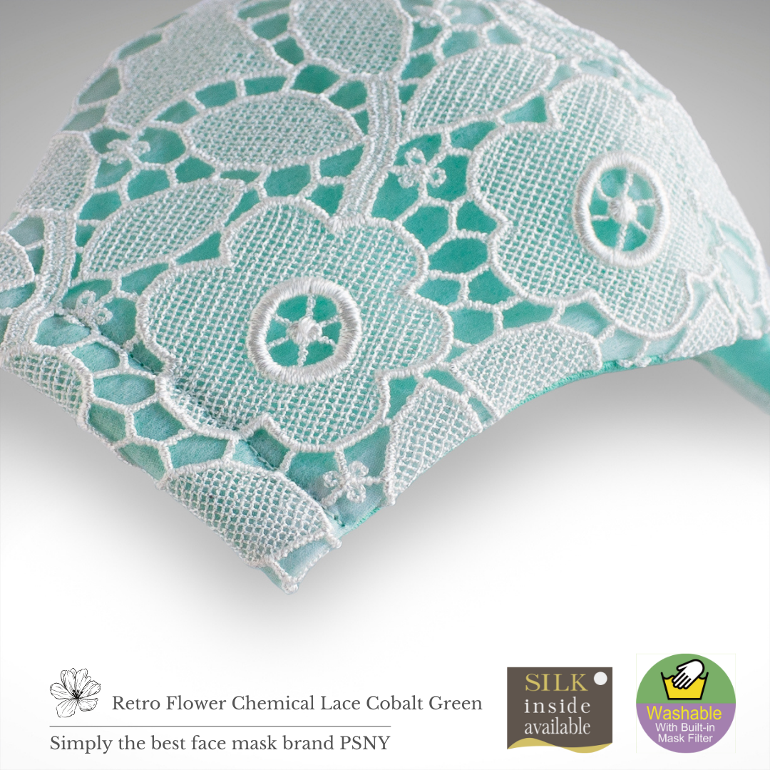 帶有懷舊復古設計化學花邊的鈷綠色面具。