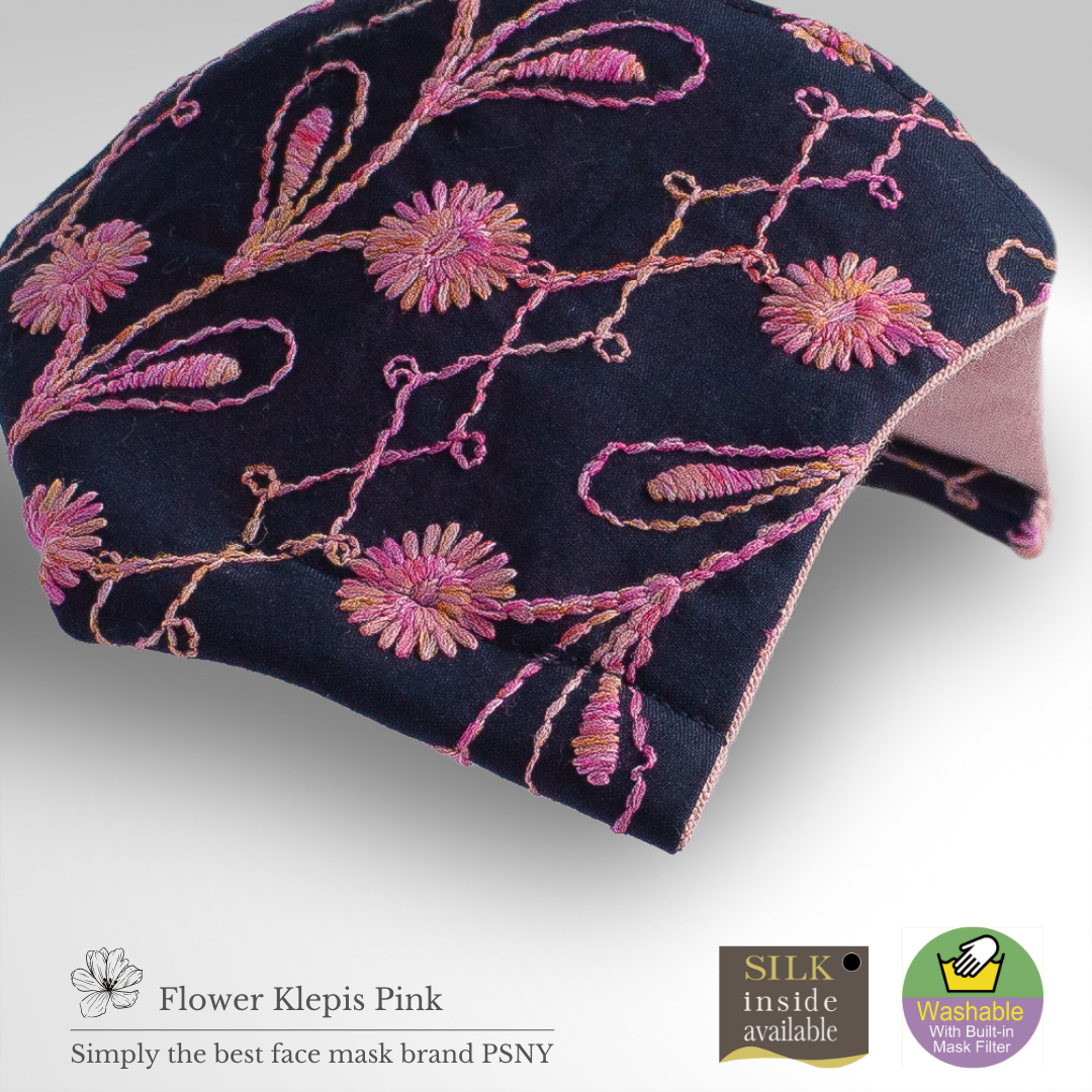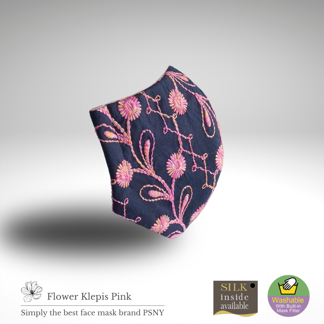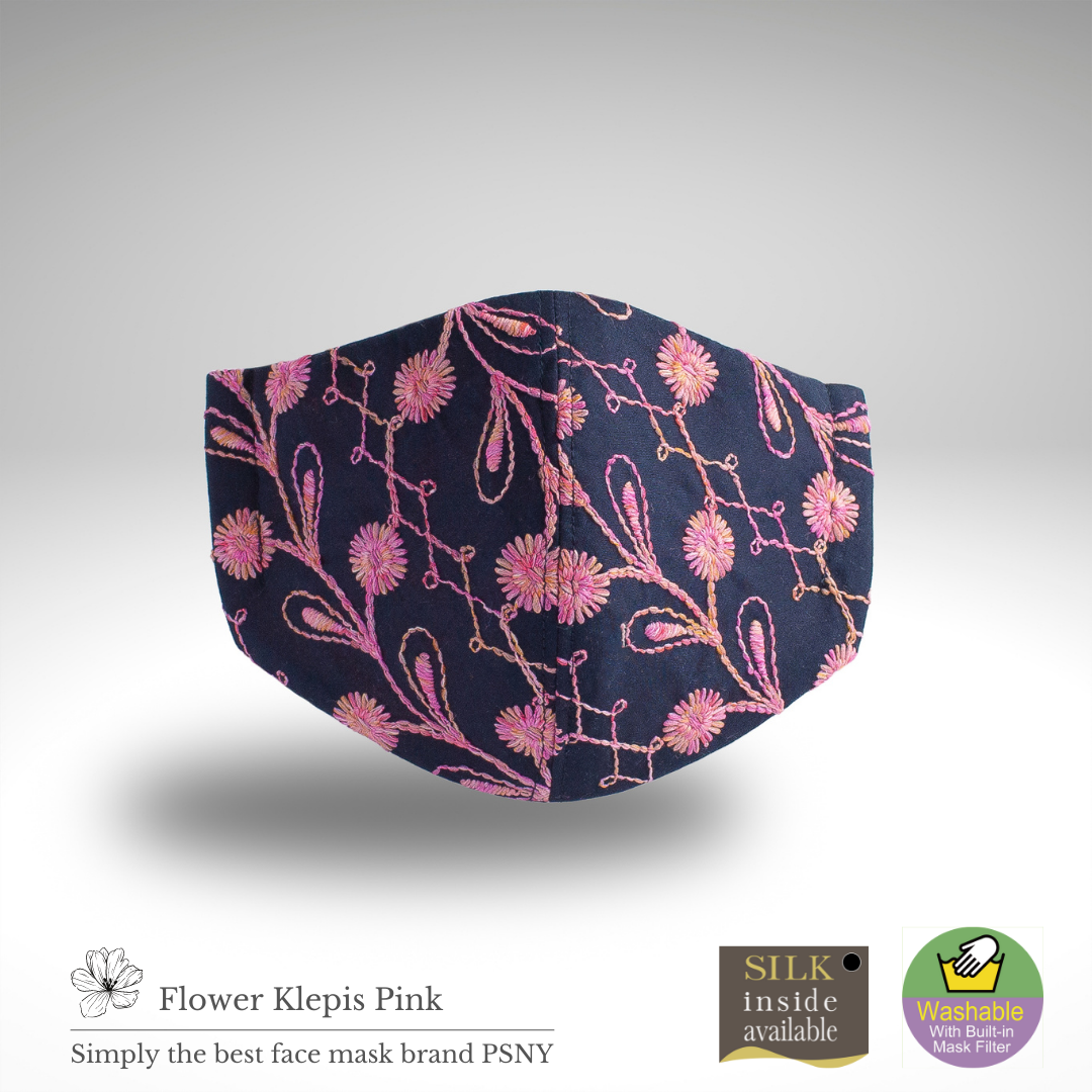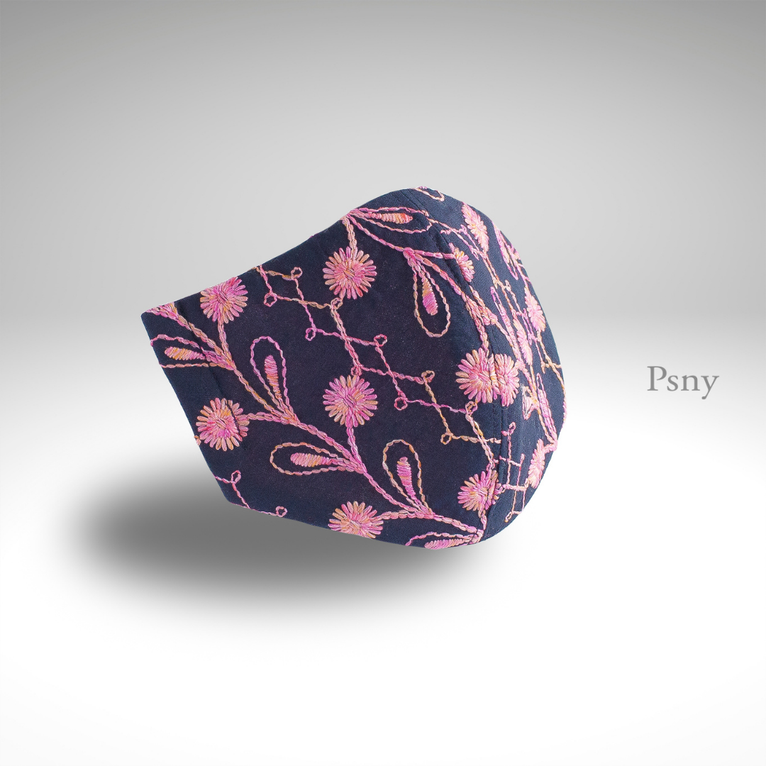 深藍色棉質底布和復古粉紅色蒲公英花卉設計的口罩,給人以優雅的印象。是好萊塢名流最愛的PSNY品牌獨有的完美度極高的作品。
