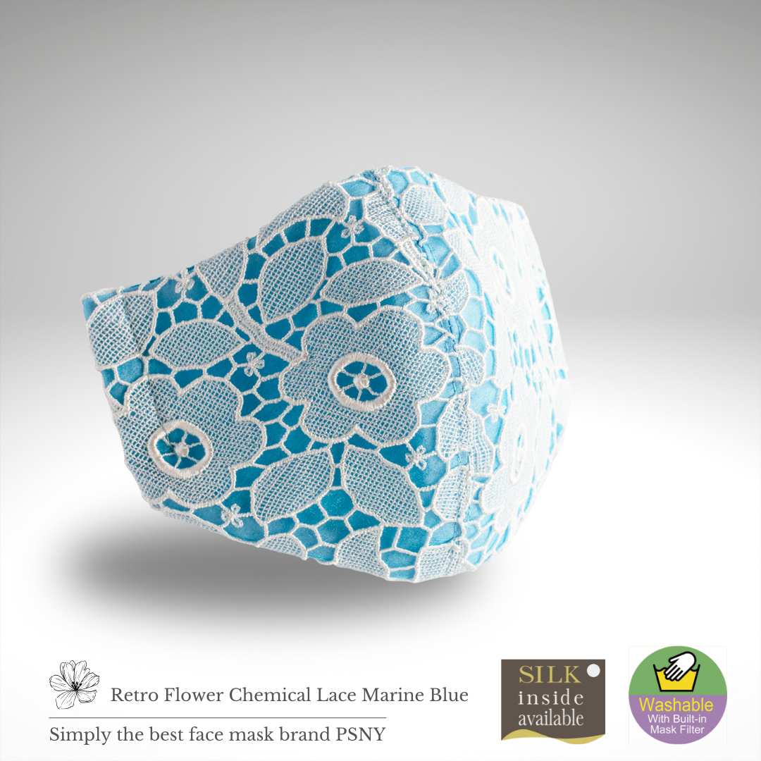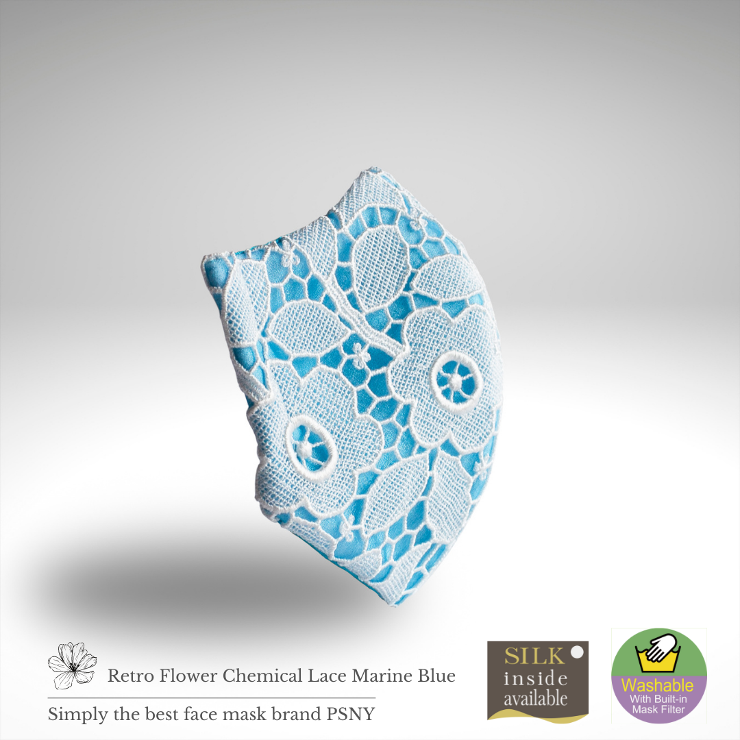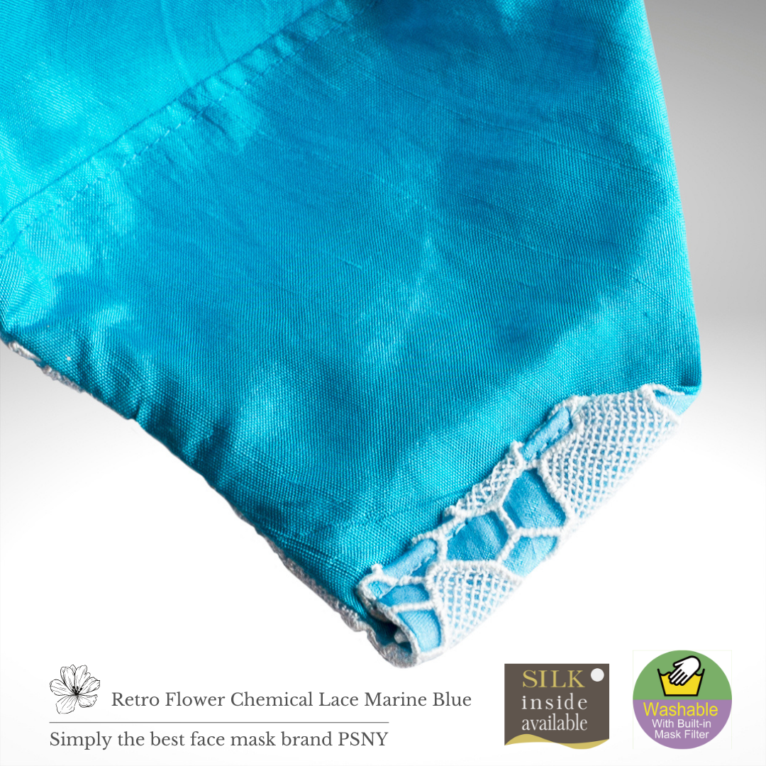 帶有懷舊復古設計化學花邊的海藍色面具。