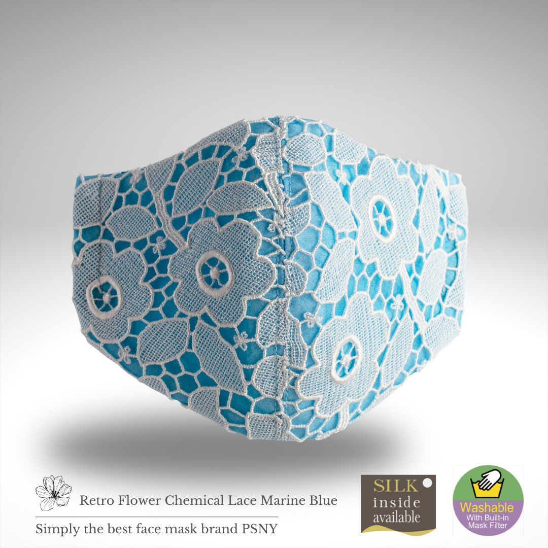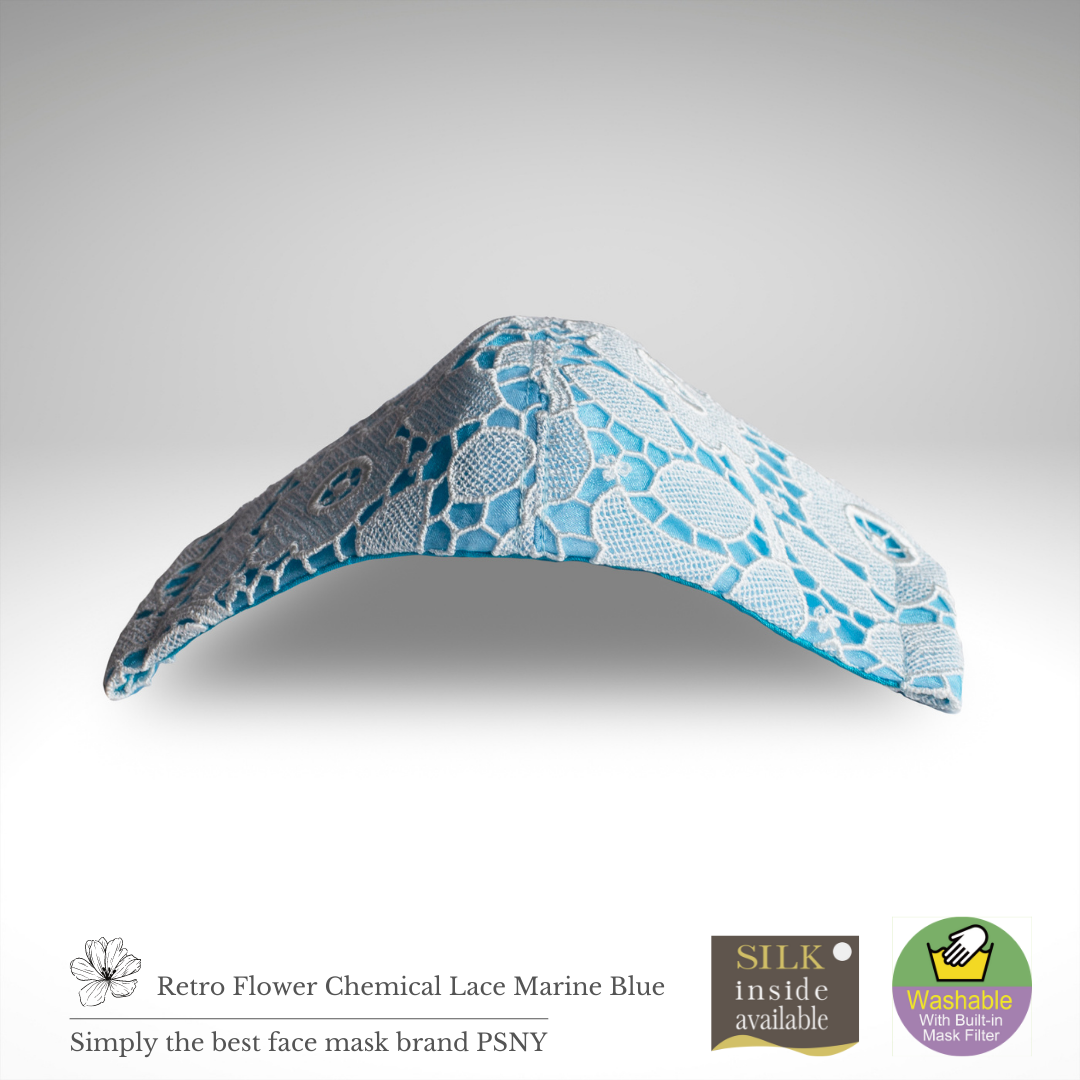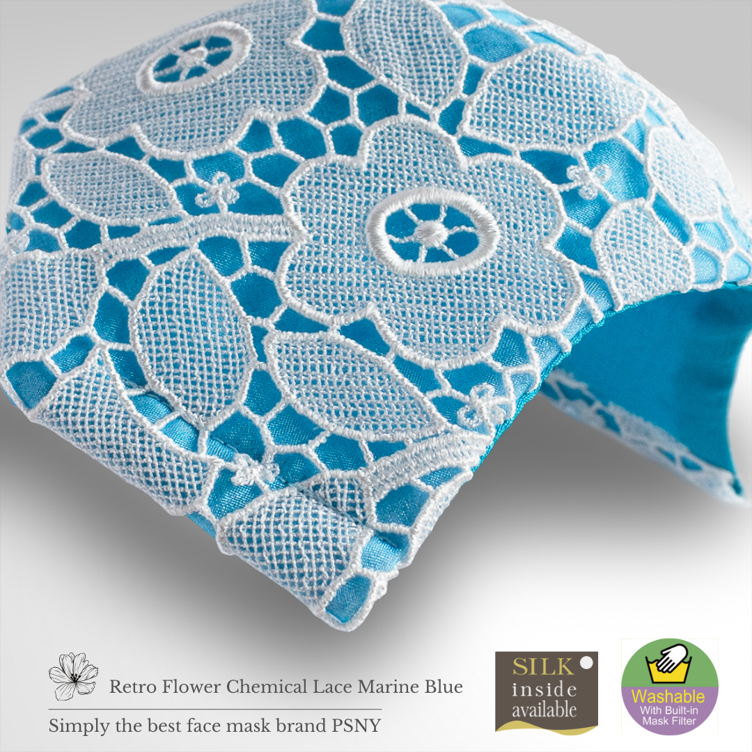 帶有懷舊復古設計化學花邊的海藍色面具。