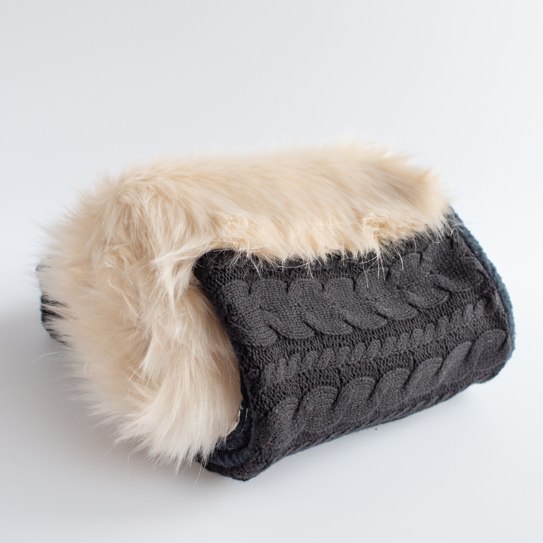 A面:1.白色生態毛皮 2.阿蘭針織 3.圓點針織