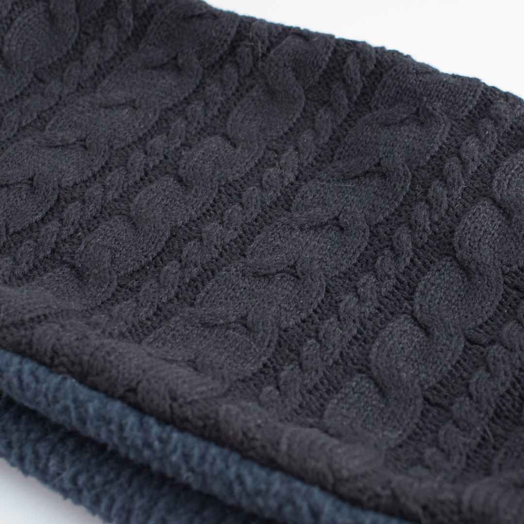 白色生態毛皮和黑色 Aran 圖案針織和圓點圍脖人造毛皮成人協調 SD17