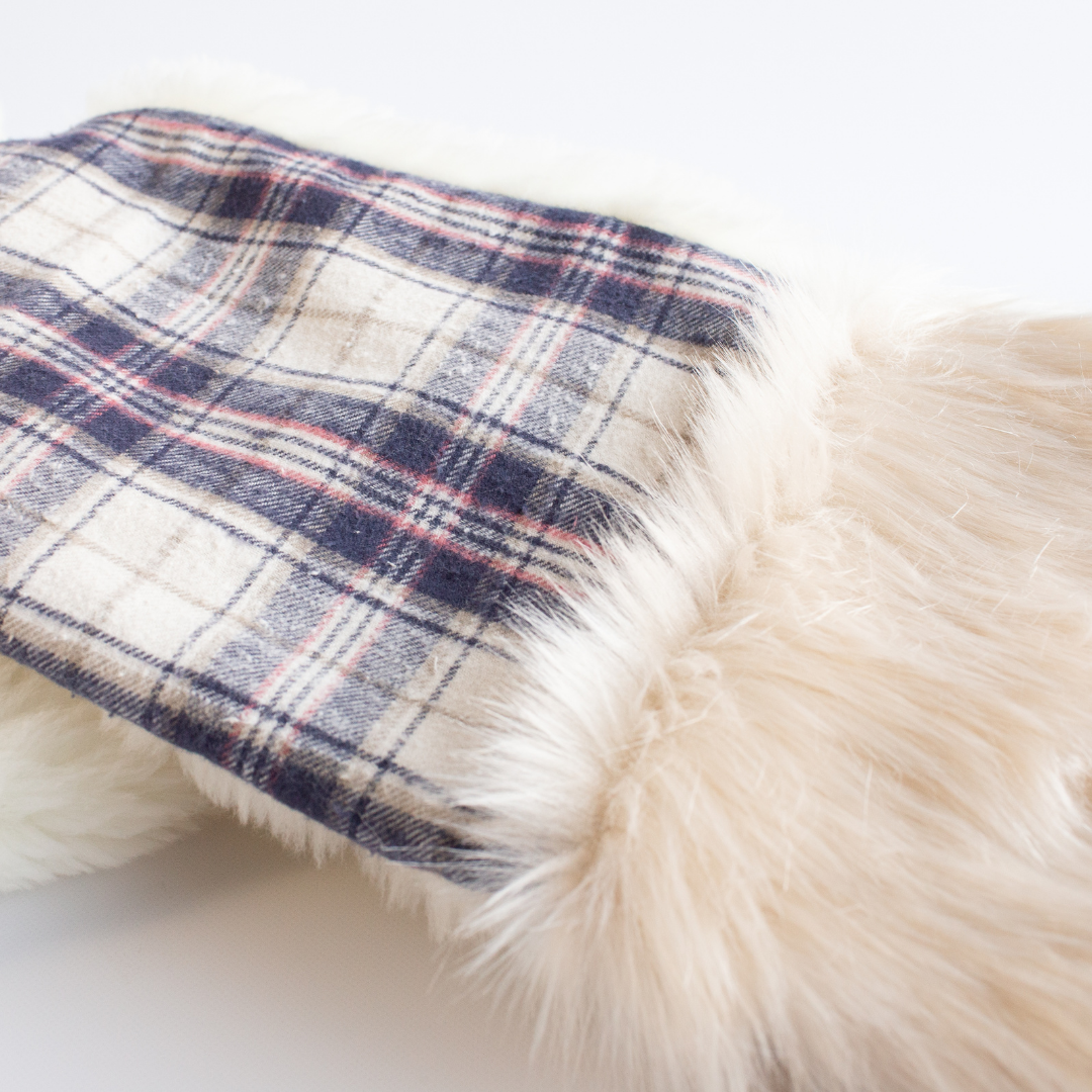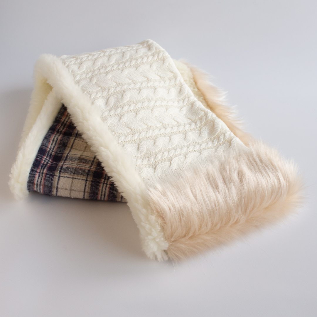PSNY 白色生態毛皮和白色 Aran 圖案針織和格子圍巾人造毛皮成人協調 SD18